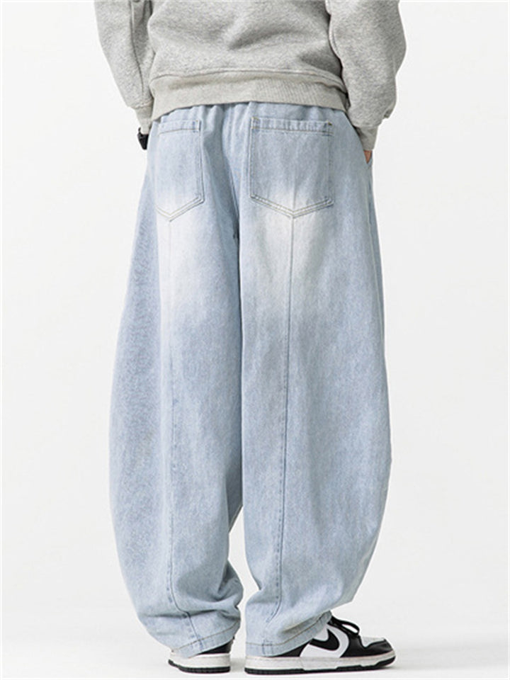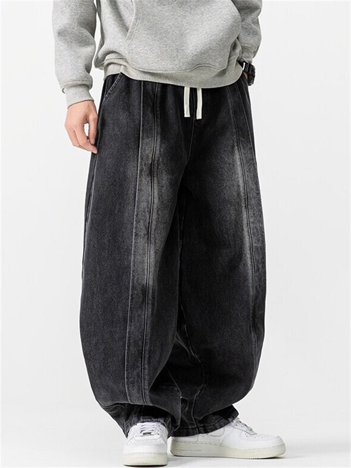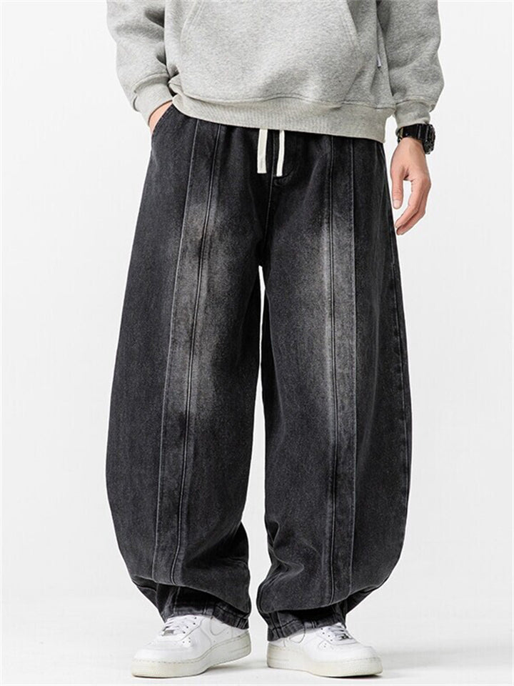Men's Retro Solid Color Drawstring Loose Denim Pants