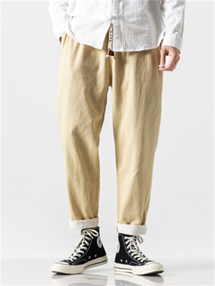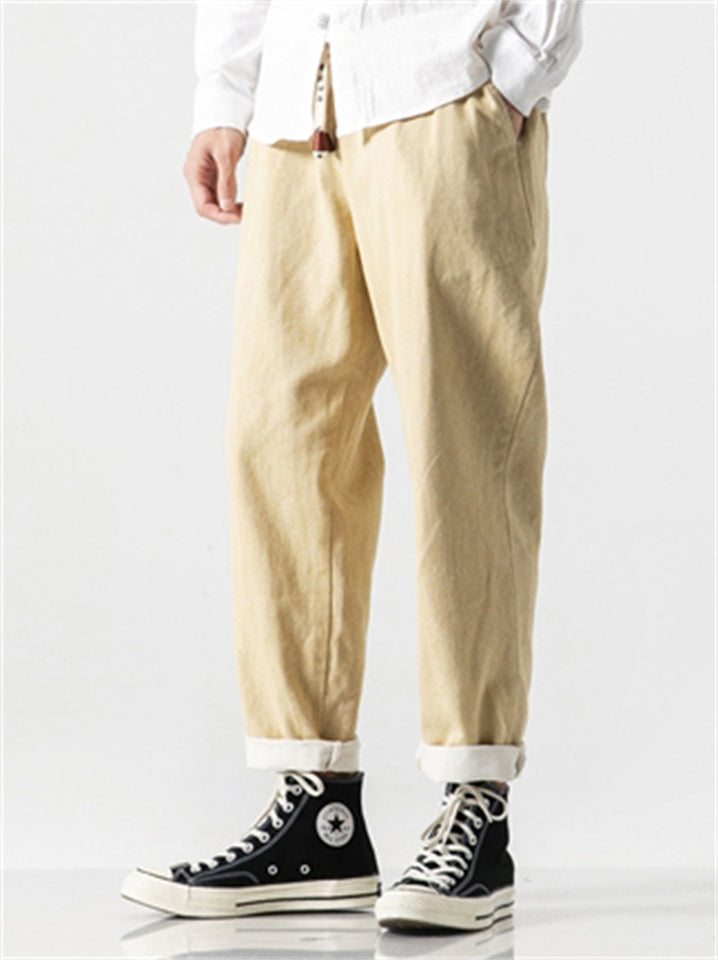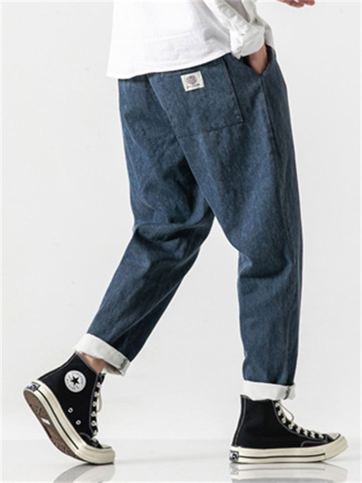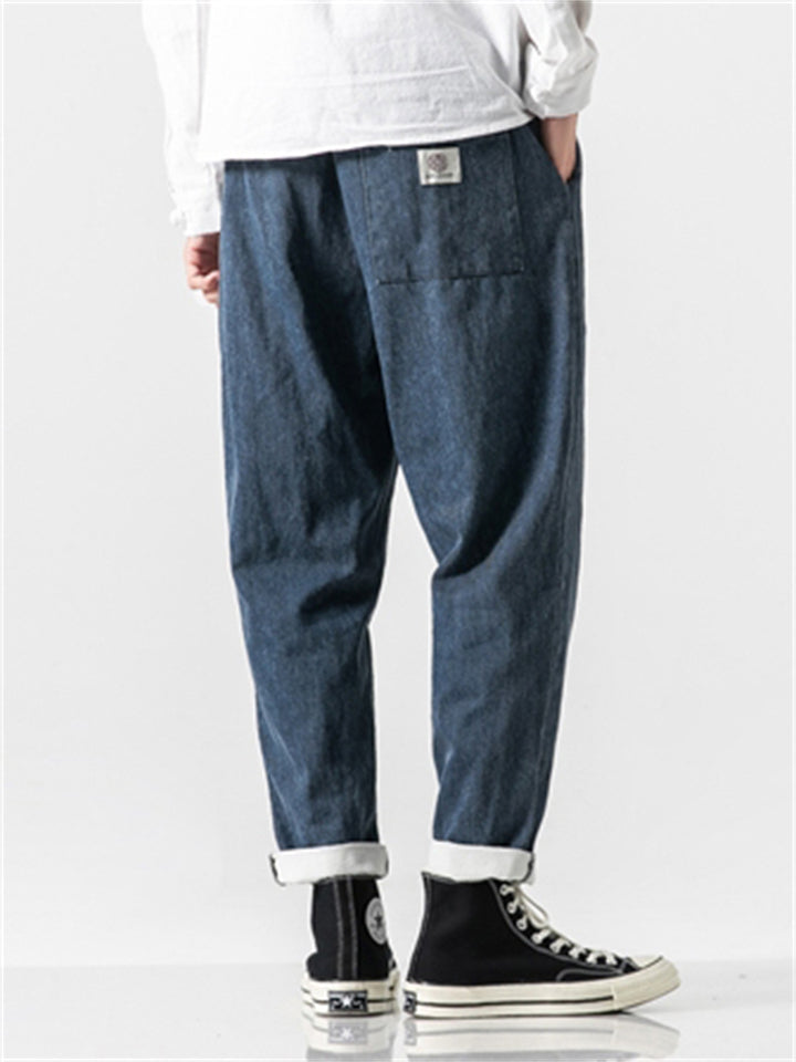 Japanese Style Retro Cotton Scimitar Cropped Jeans for Men