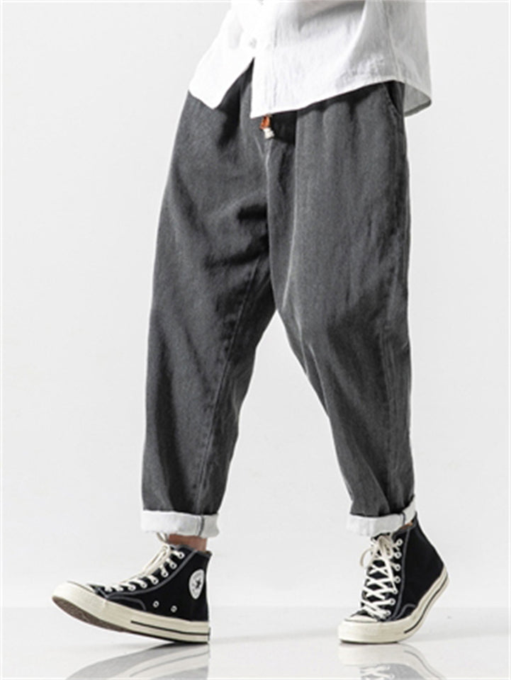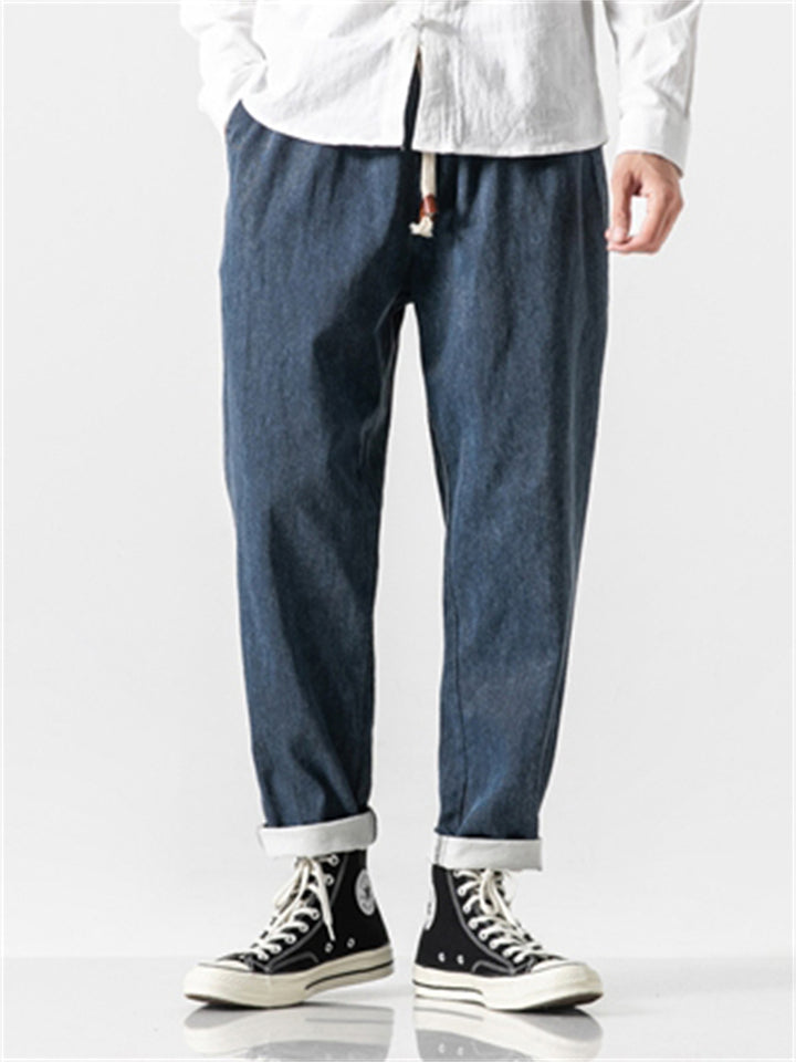 Men's Retro Solid Color Drawstring Loose Denim Pants