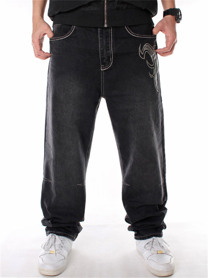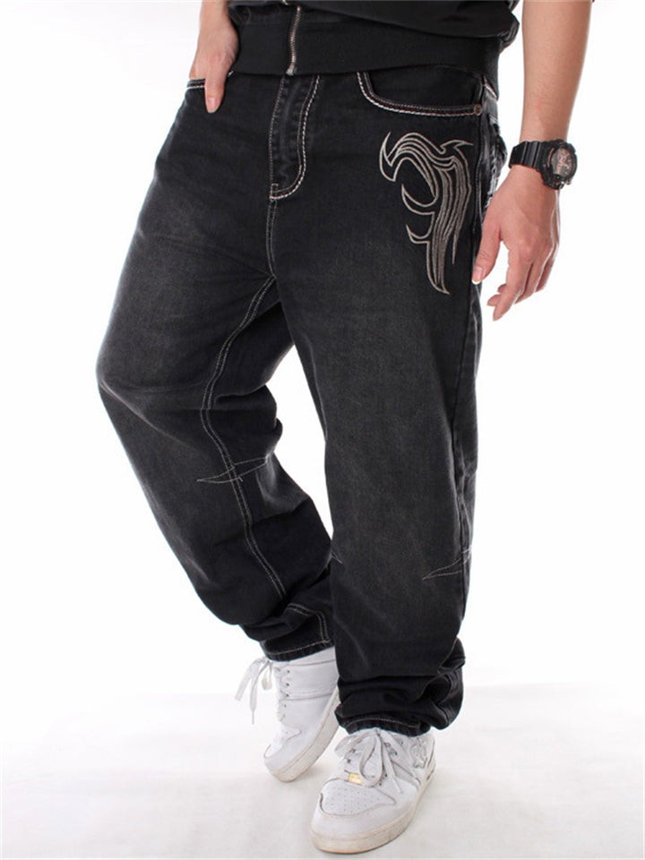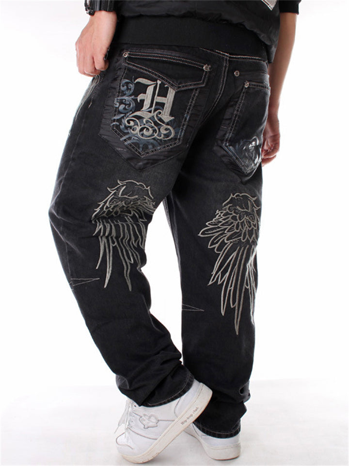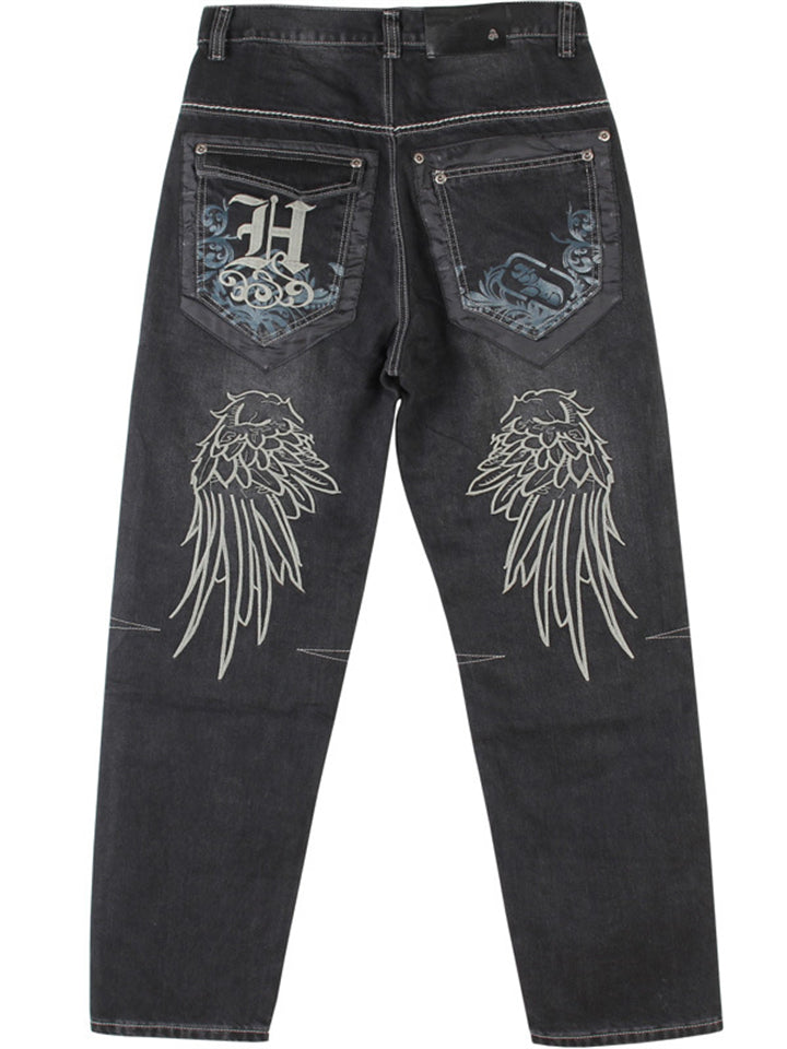 Men's Vintage Contrast Color Printed Straight Wide Leg Jeans