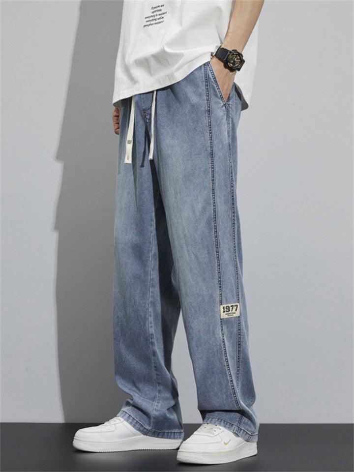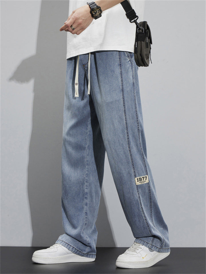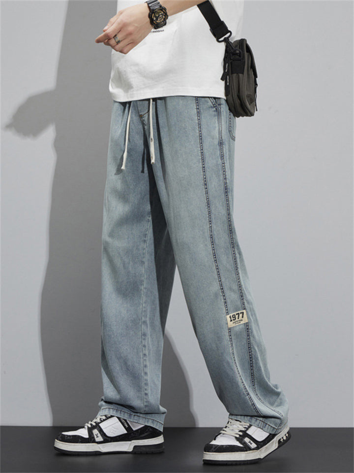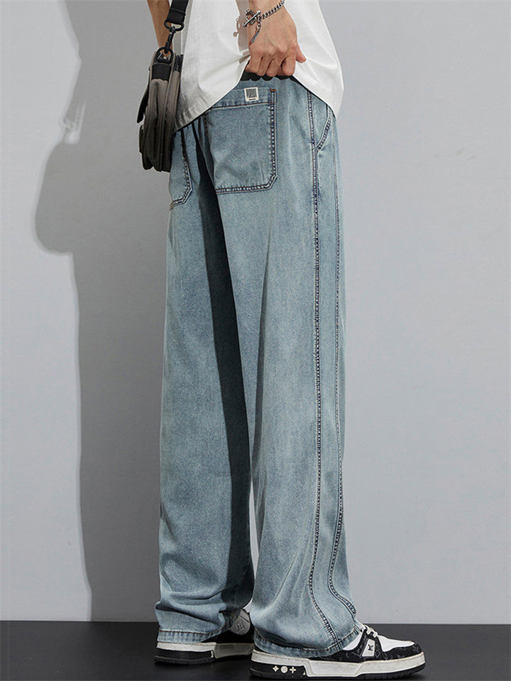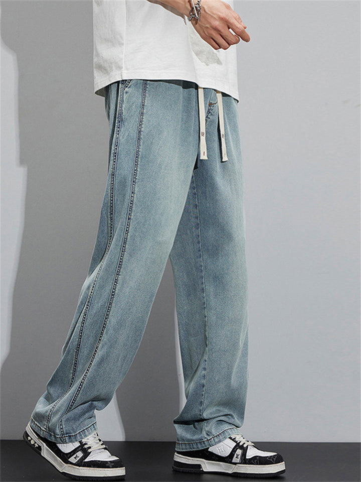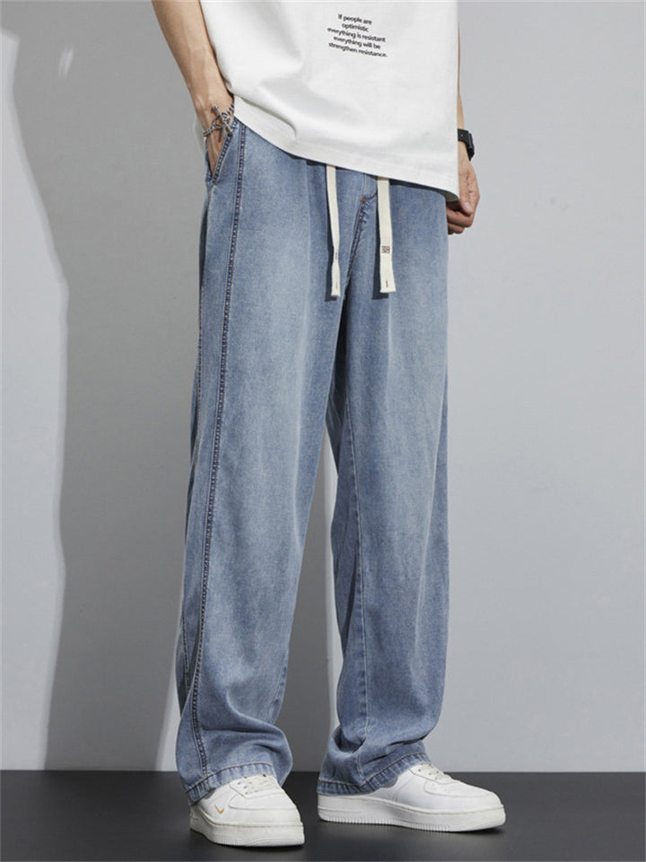 Men's Retro Solid Color Drawstring Loose Denim Pants