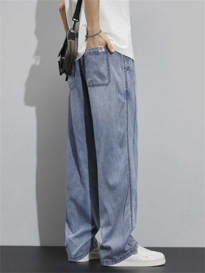 Men's Summer Cool Blue Solid Color Straight Jeans