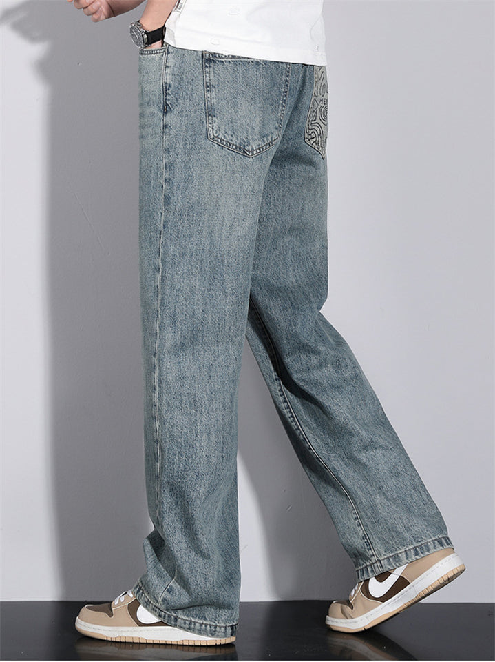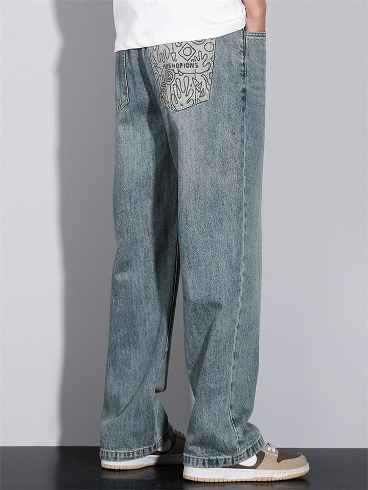 Men's Vintage Contrast Color Printed Straight Wide Leg Jeans