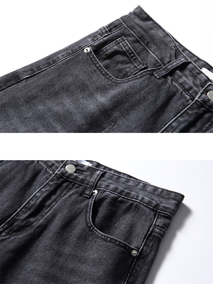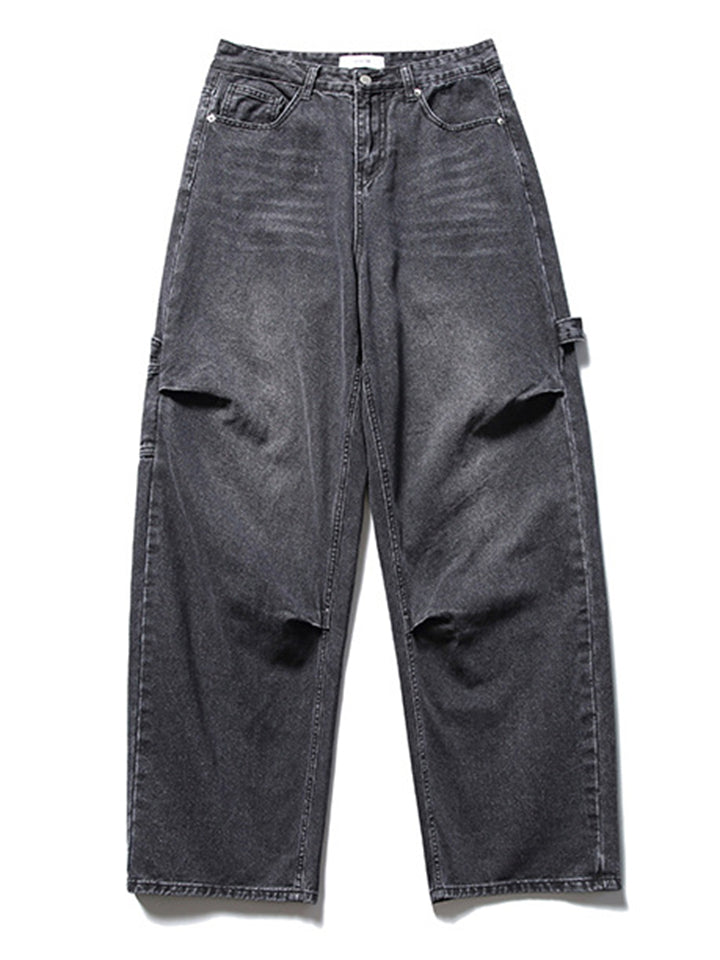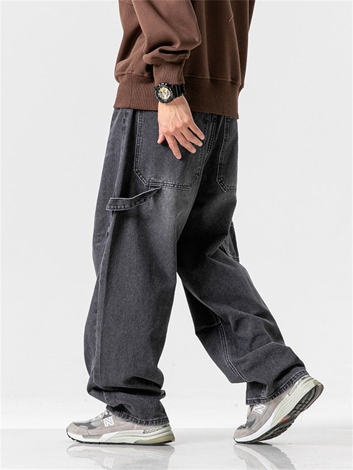 Men's Distressed Solid Color 3D Pockets Wide Leg Straight Jeans