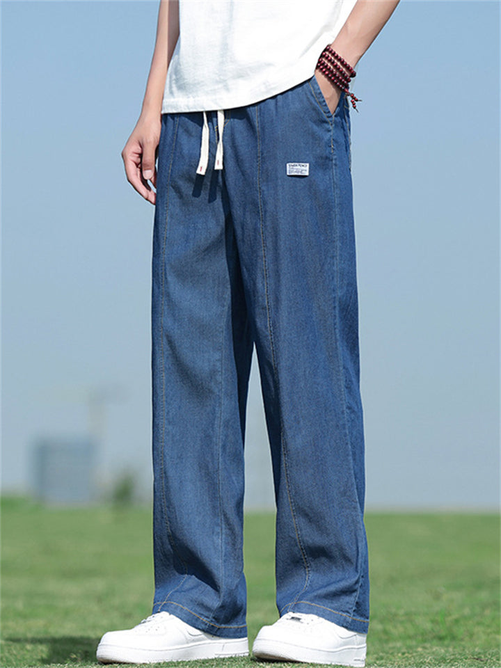 Men's Retro Solid Color Drawstring Loose Denim Pants