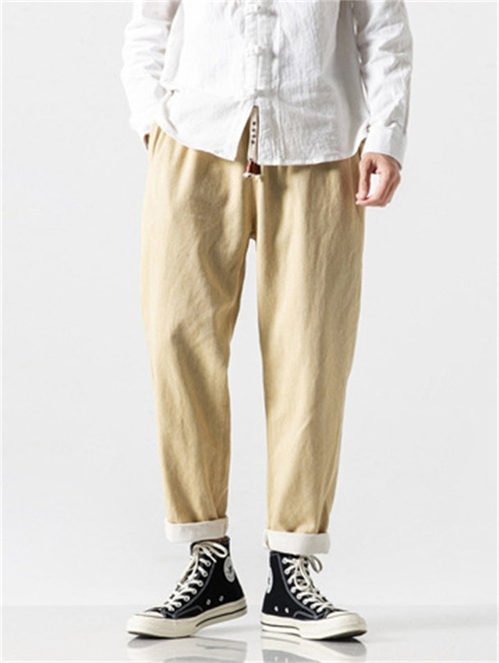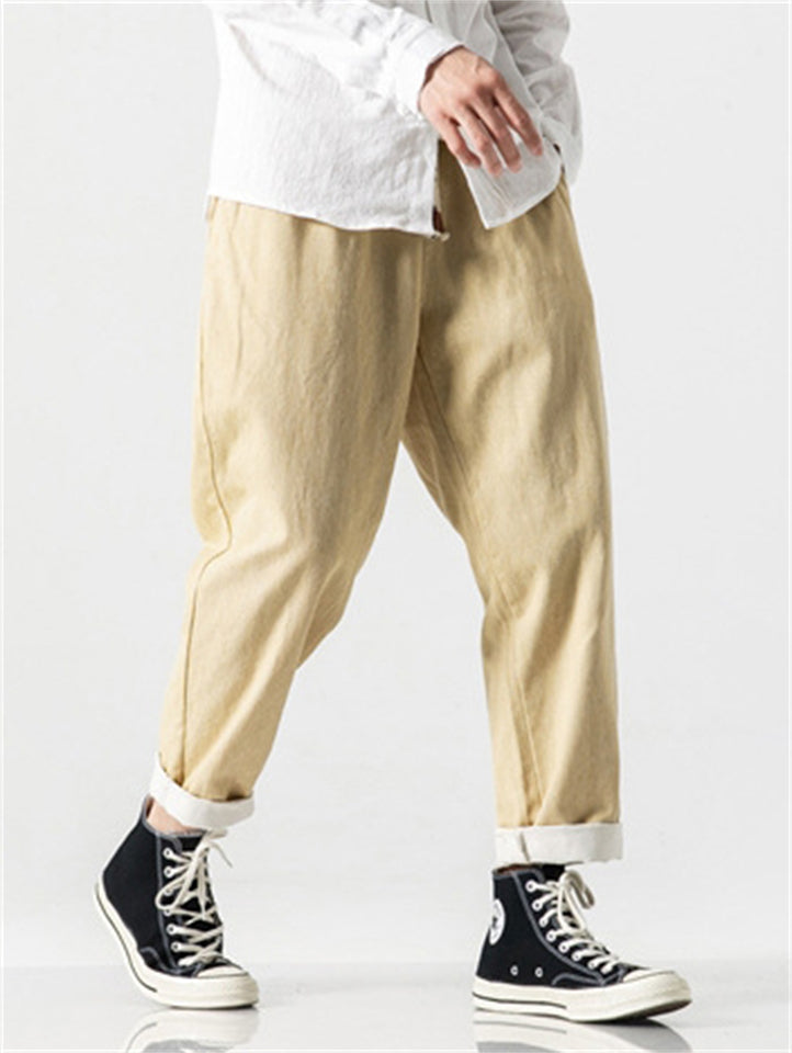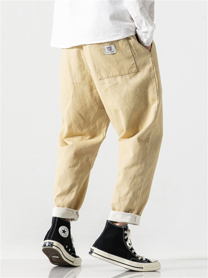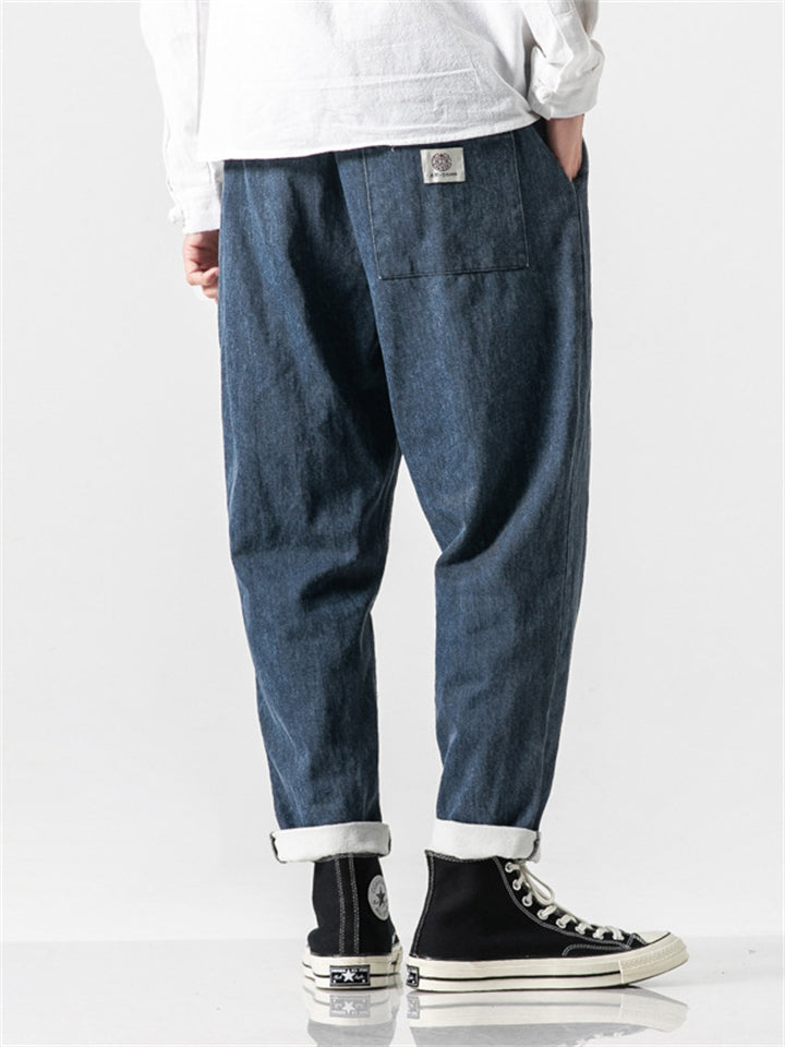 Japanese Style Retro Cotton Scimitar Cropped Jeans for Men