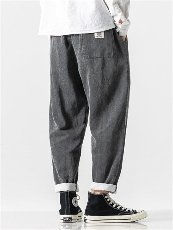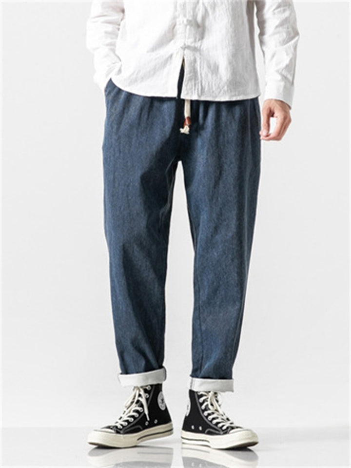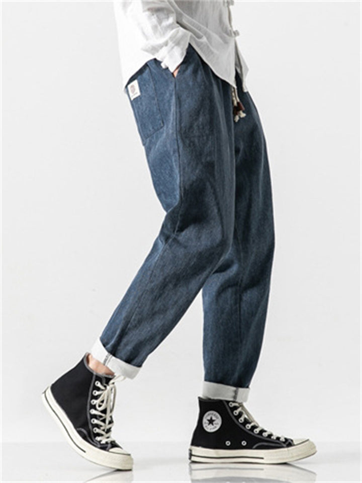 Men's Retro Solid Color Drawstring Loose Denim Pants