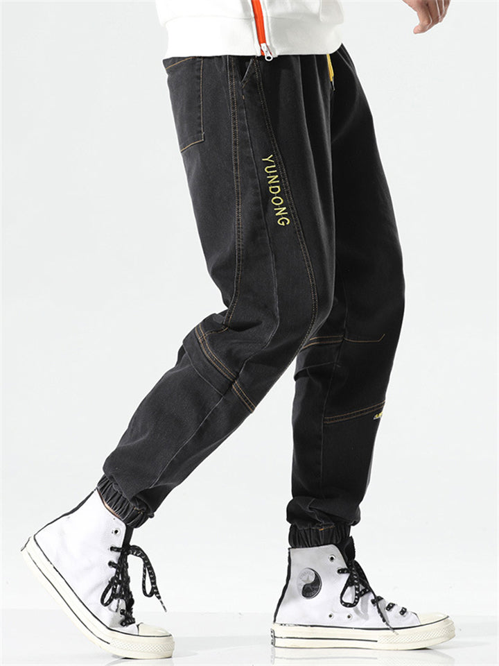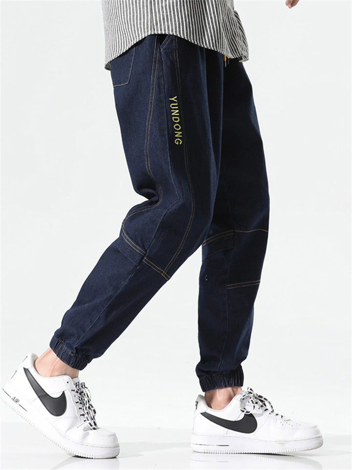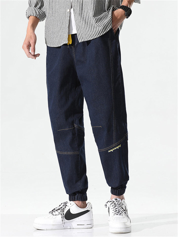Men's Retro Solid Color Drawstring Loose Denim Pants