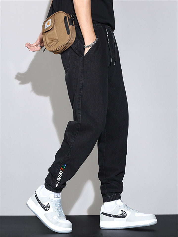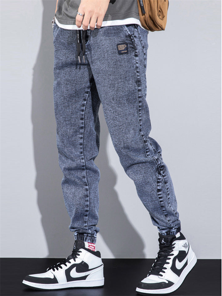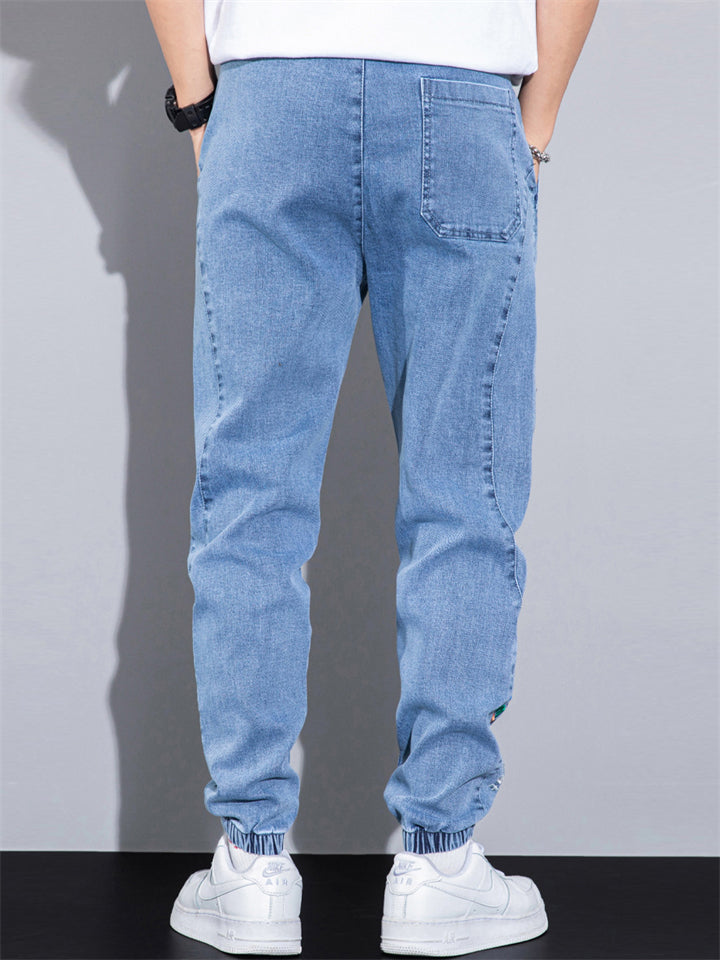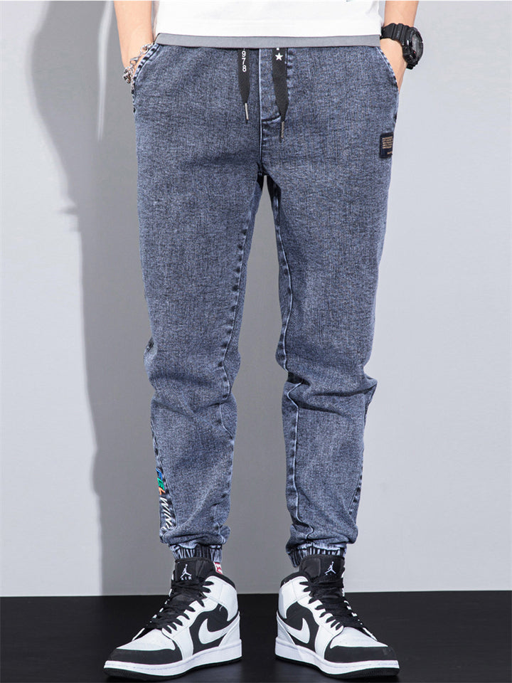 Men's Retro Solid Color Drawstring Loose Denim Pants