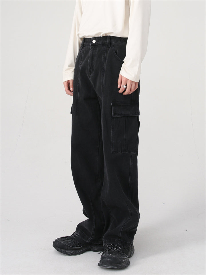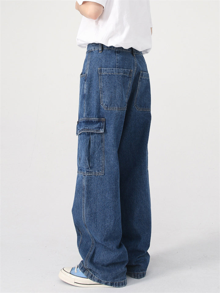 High Street Casual Patchwork Pockets Cargo Jeans for Men