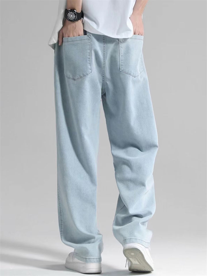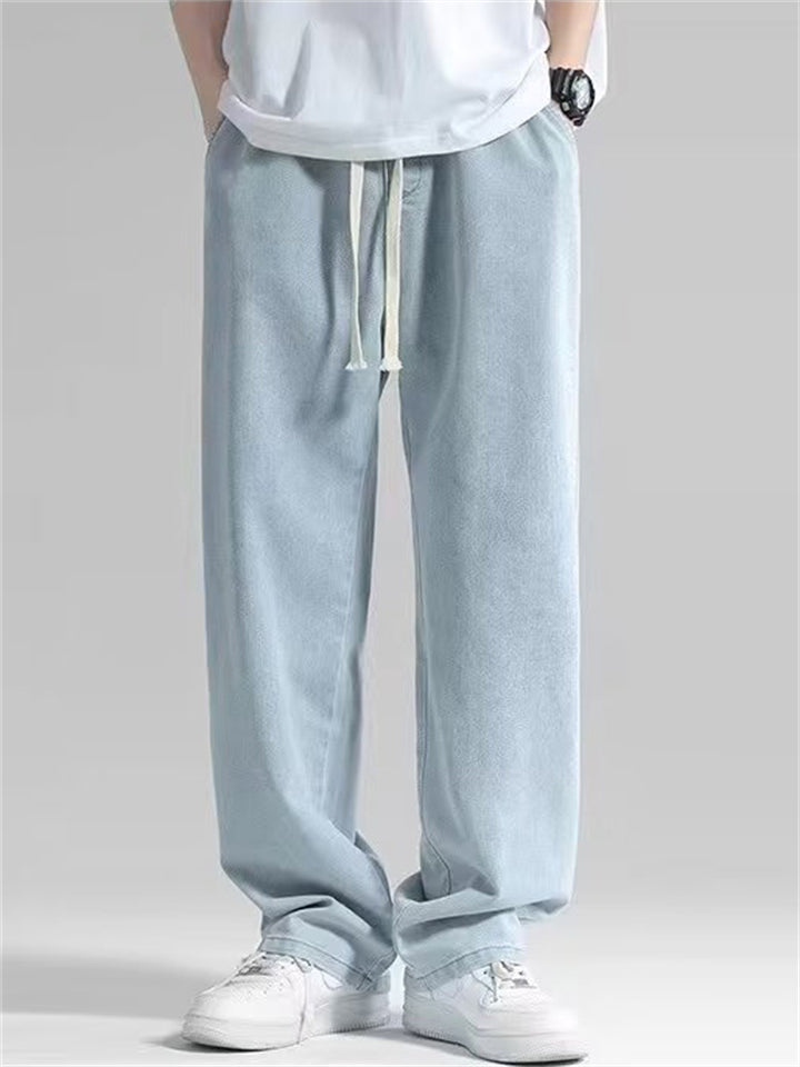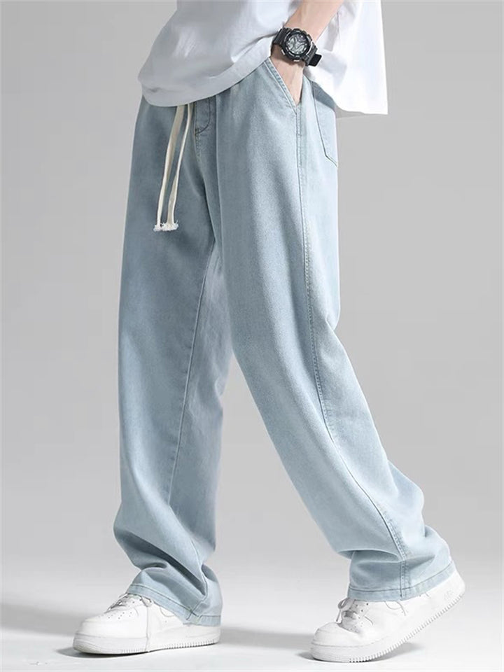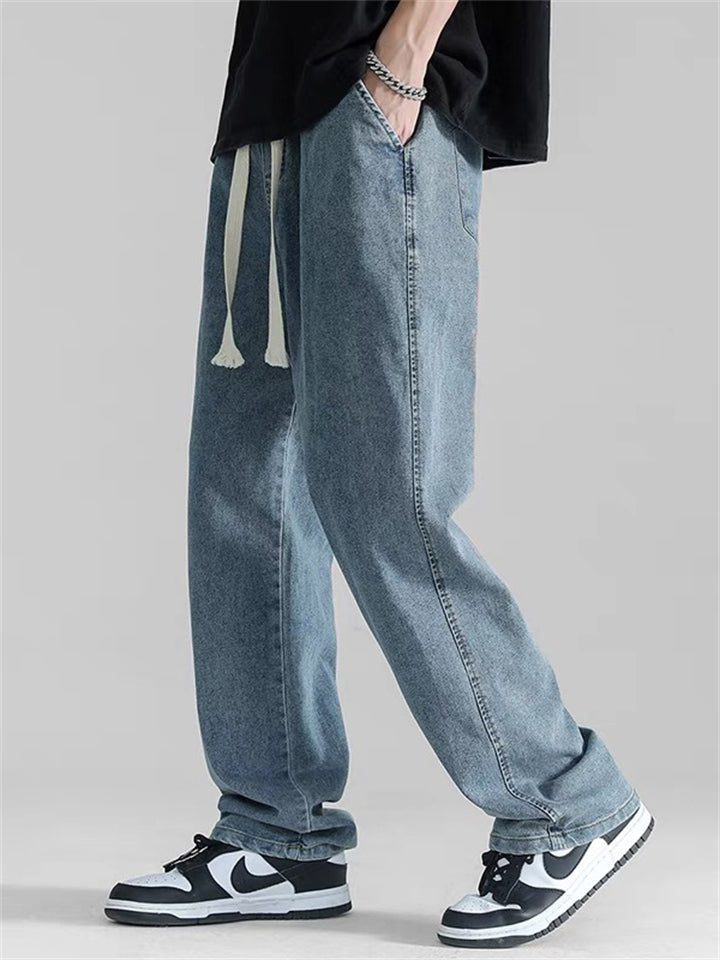 Men's Retro Solid Color Drawstring Loose Denim Pants