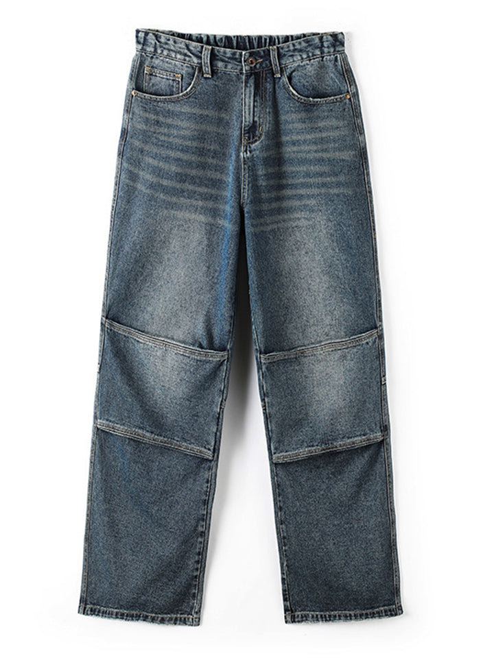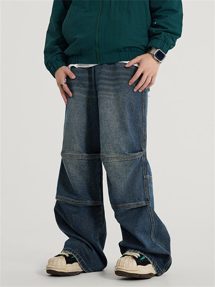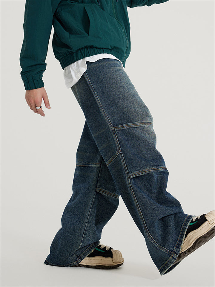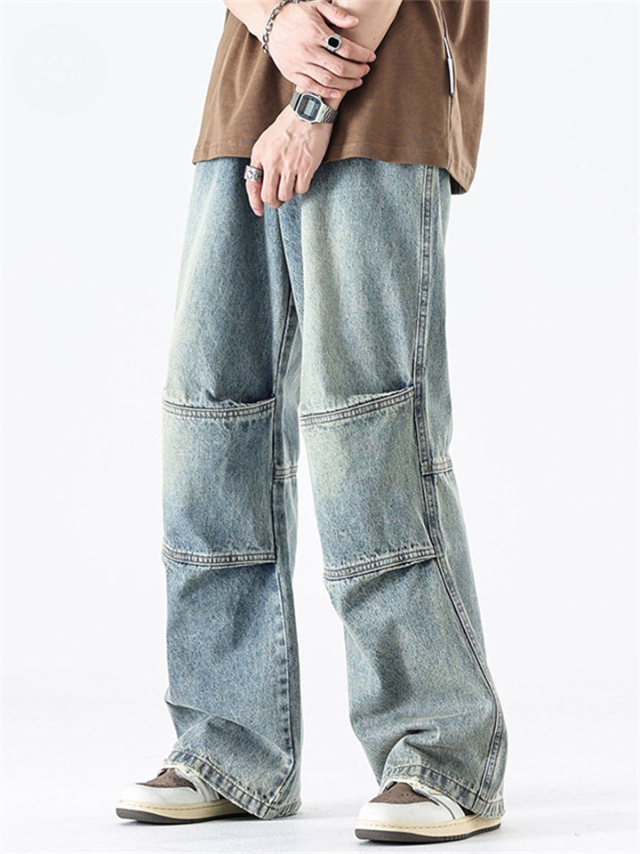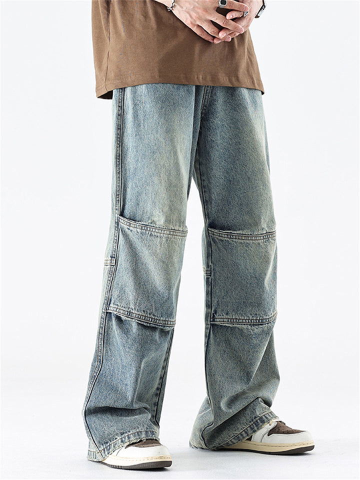 Japanese Style Retro Loose Wide Leg Patchwork Jeans for Men