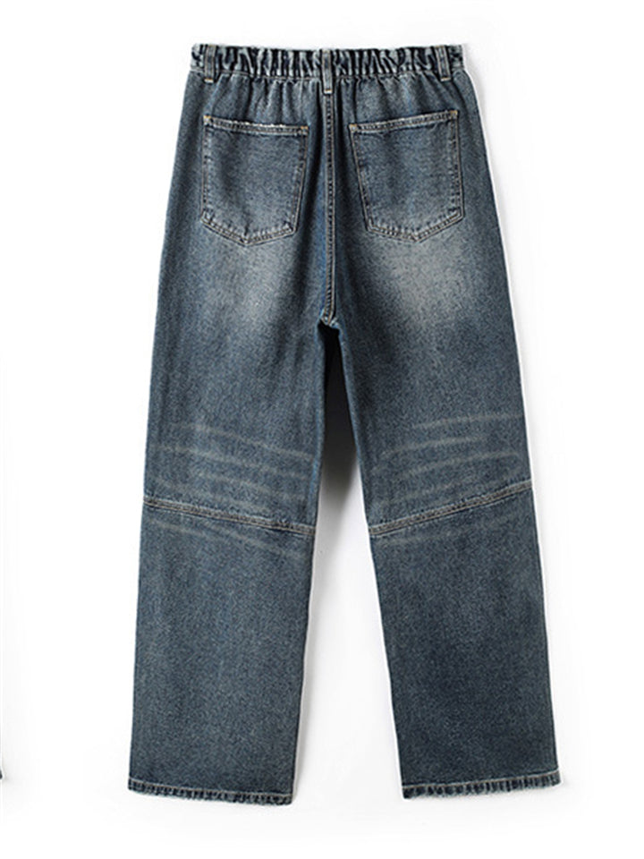 Men's Retro Solid Color Drawstring Loose Denim Pants