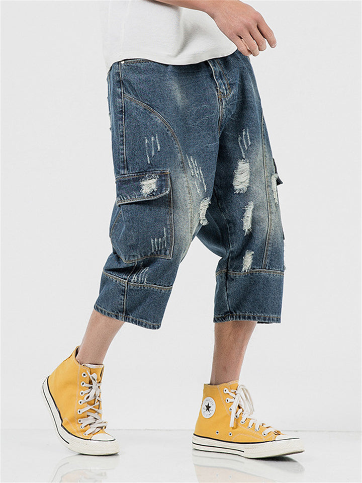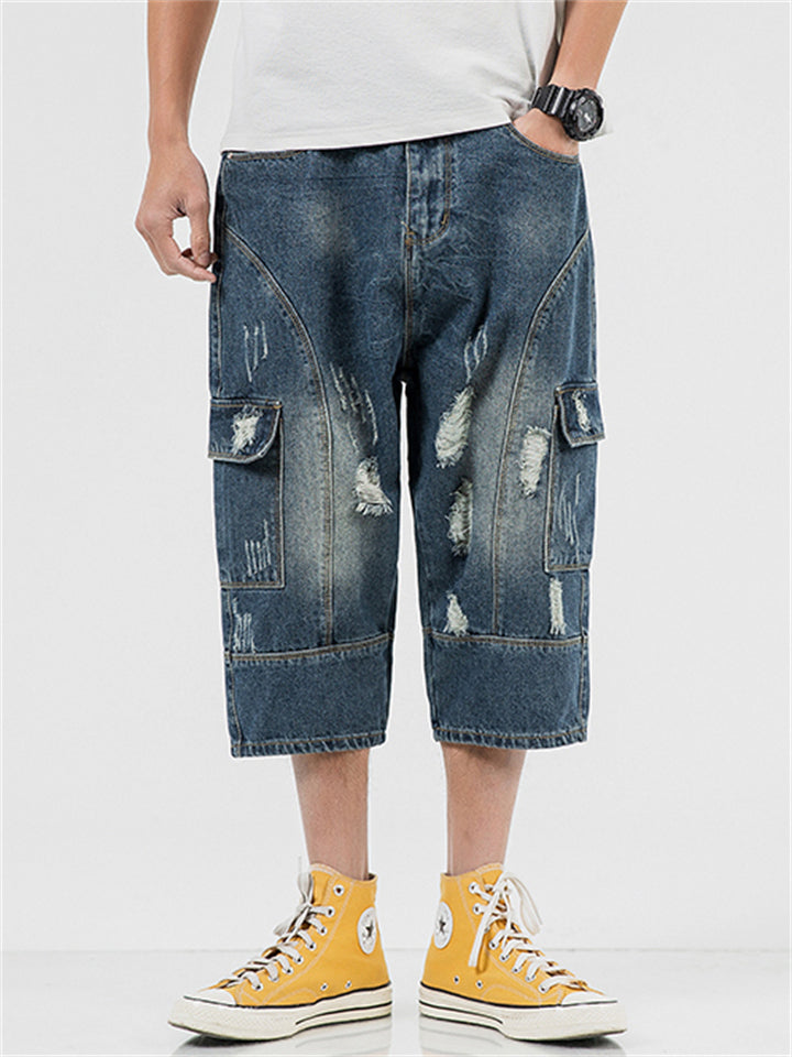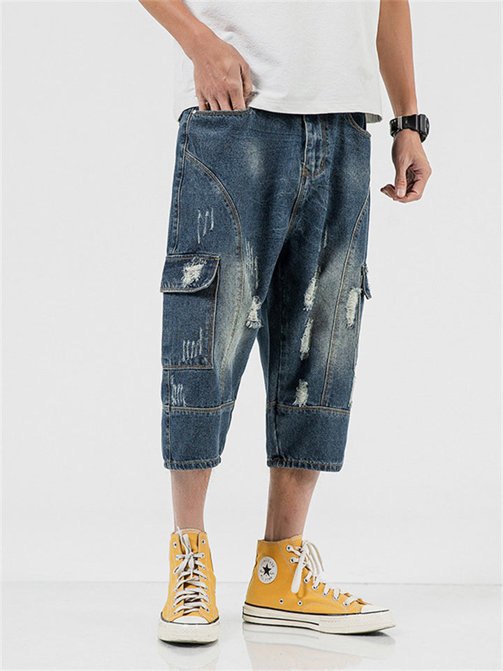 Summer Men's Casual Drawstring Denim Capri Jeans