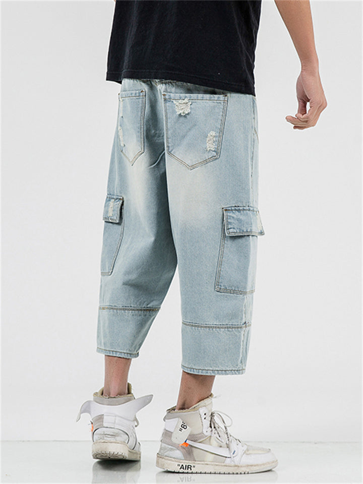 High Street Casual Patchwork Pockets Cargo Jeans for Men