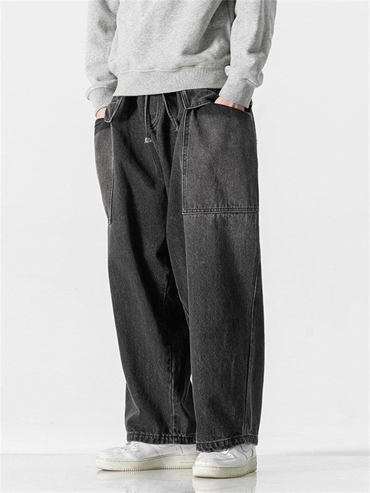 Japanese Style Retro Loose Wide Leg Patchwork Jeans for Men