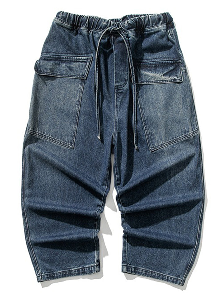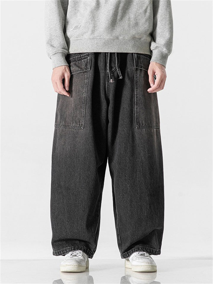 Men's Retro Solid Color Drawstring Loose Denim Pants