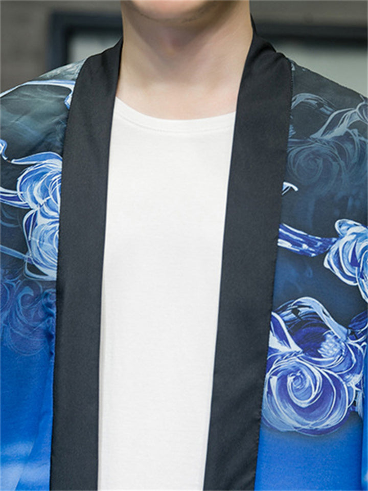 Men's 2Pcs Autumn Chinese Loong Printed Velvet Frog Button Long Sleeve Outfits