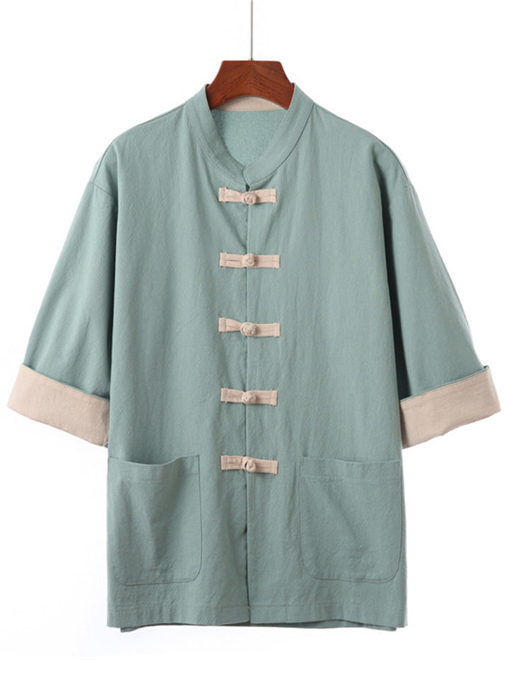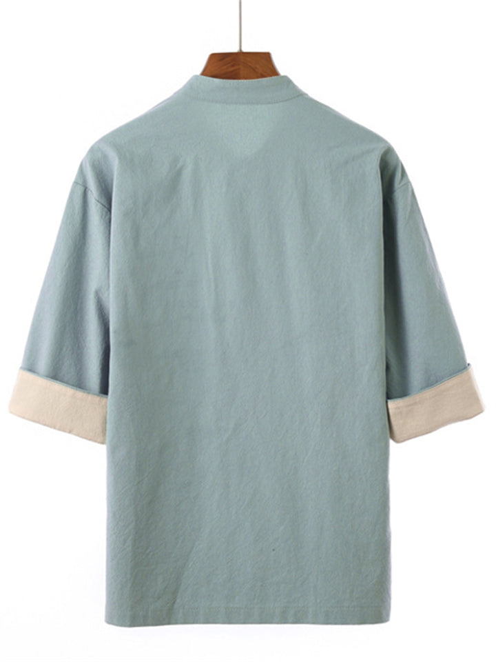 Men's 2Pcs Retro Chinese Style Casual Solid Color 3/4 Sleeve V Neck Outfits