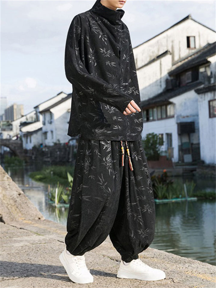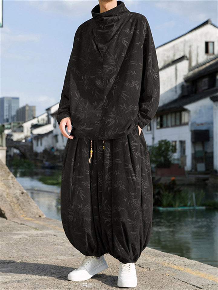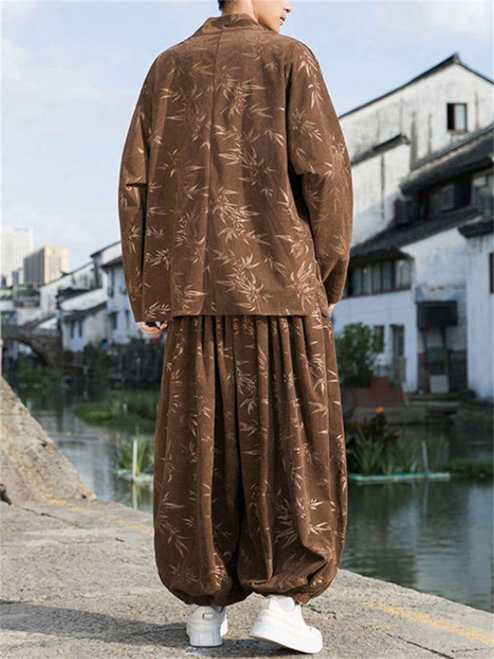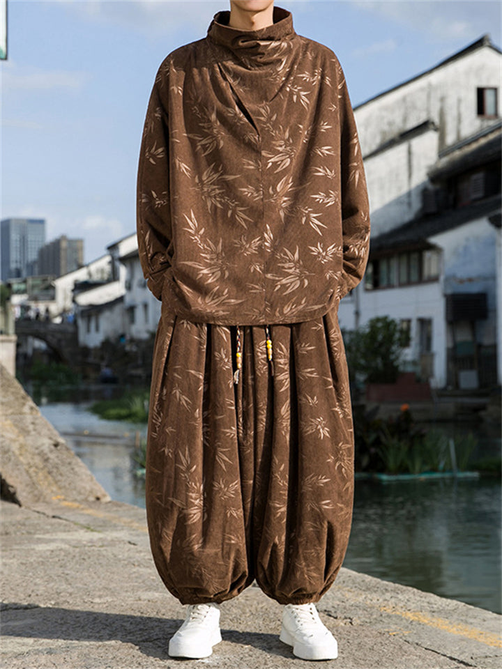 Male Bamboo Leaves Pullover T-shirt & Pants Corduroy Outfits