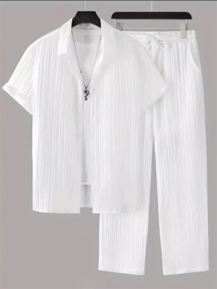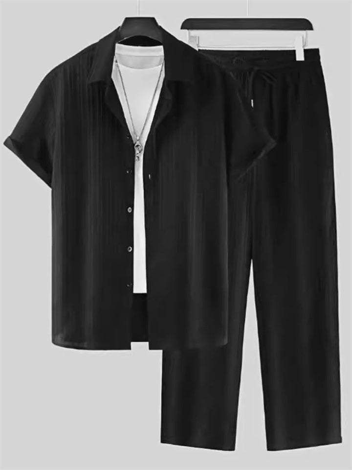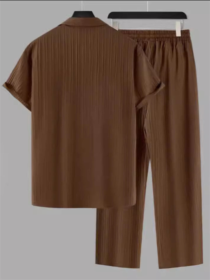 Men's 2Pcs Summer Stripe Single Breasted Lapel Solid Color Outfits