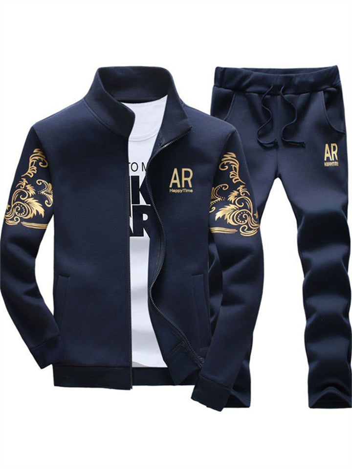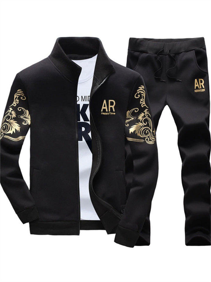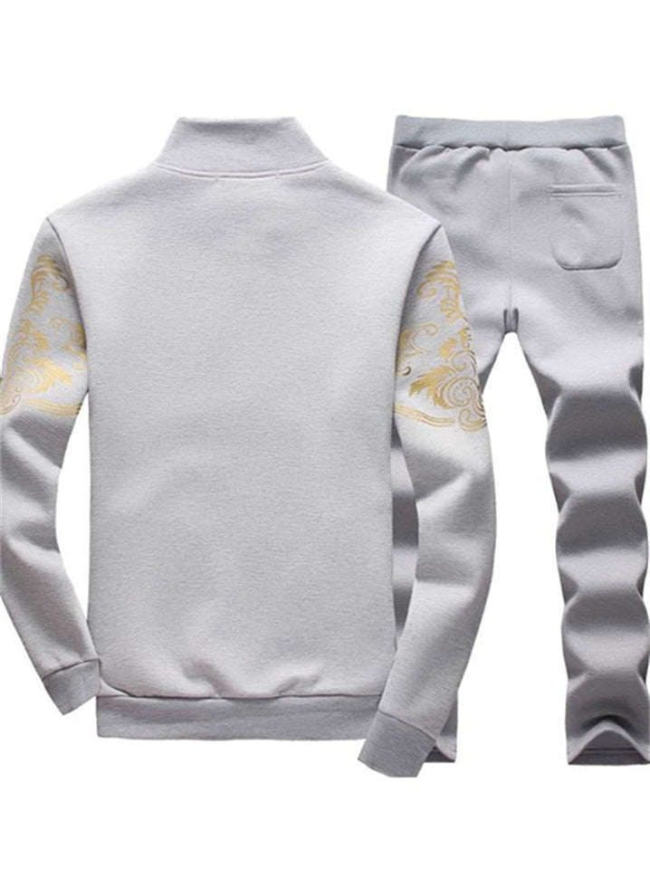 Men's Autumn Printed Casual Zip Up Sports Sweatshirts and Sweatpants Outfits