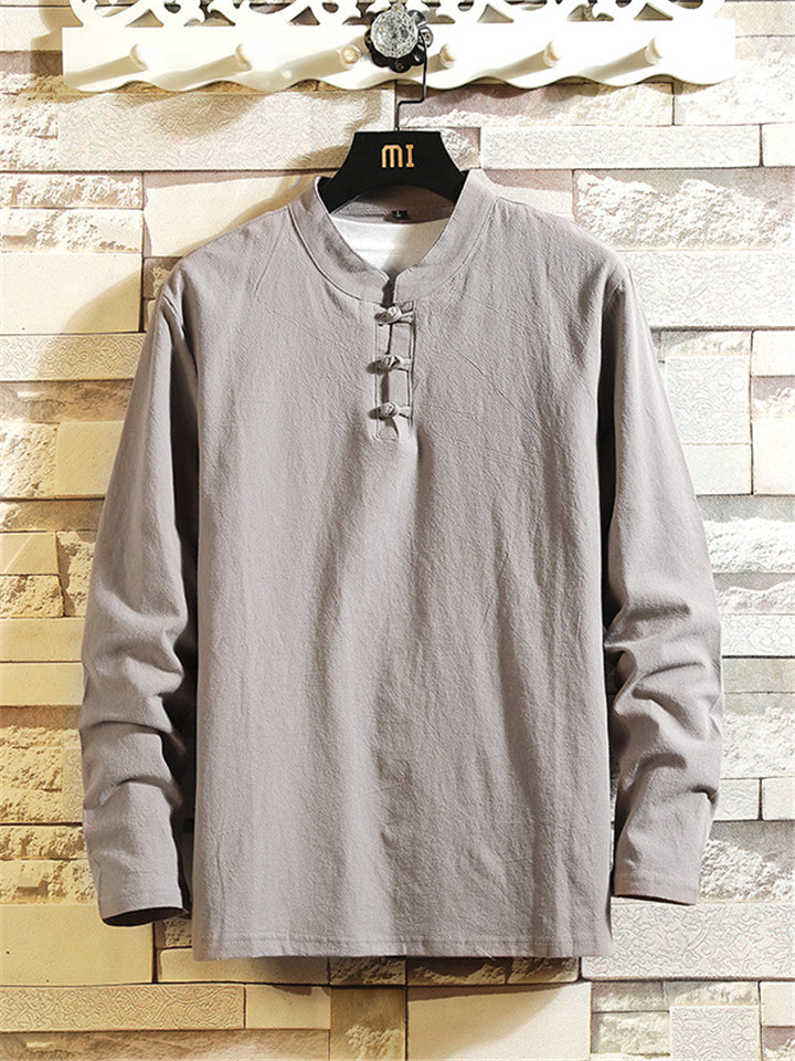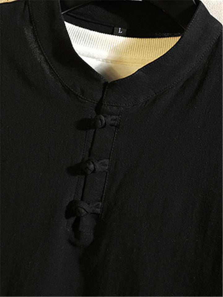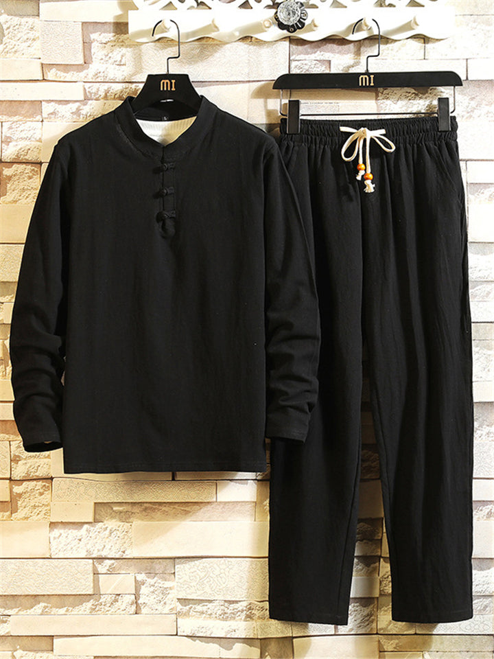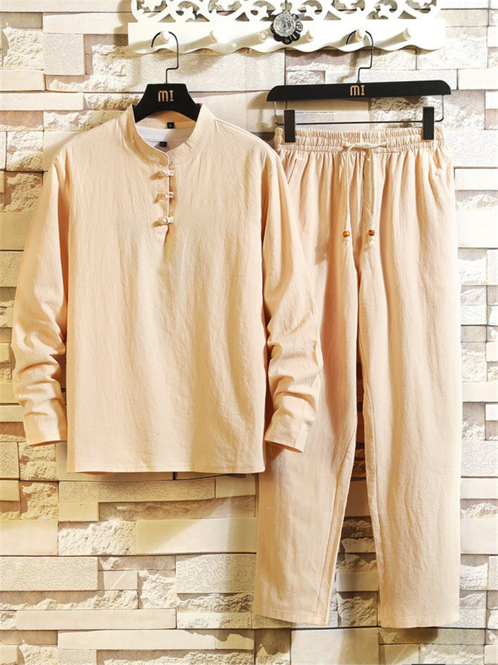 Men's 2Pcs Comfy Autumn Cotton Linen Solid Color TangSuit Outfit