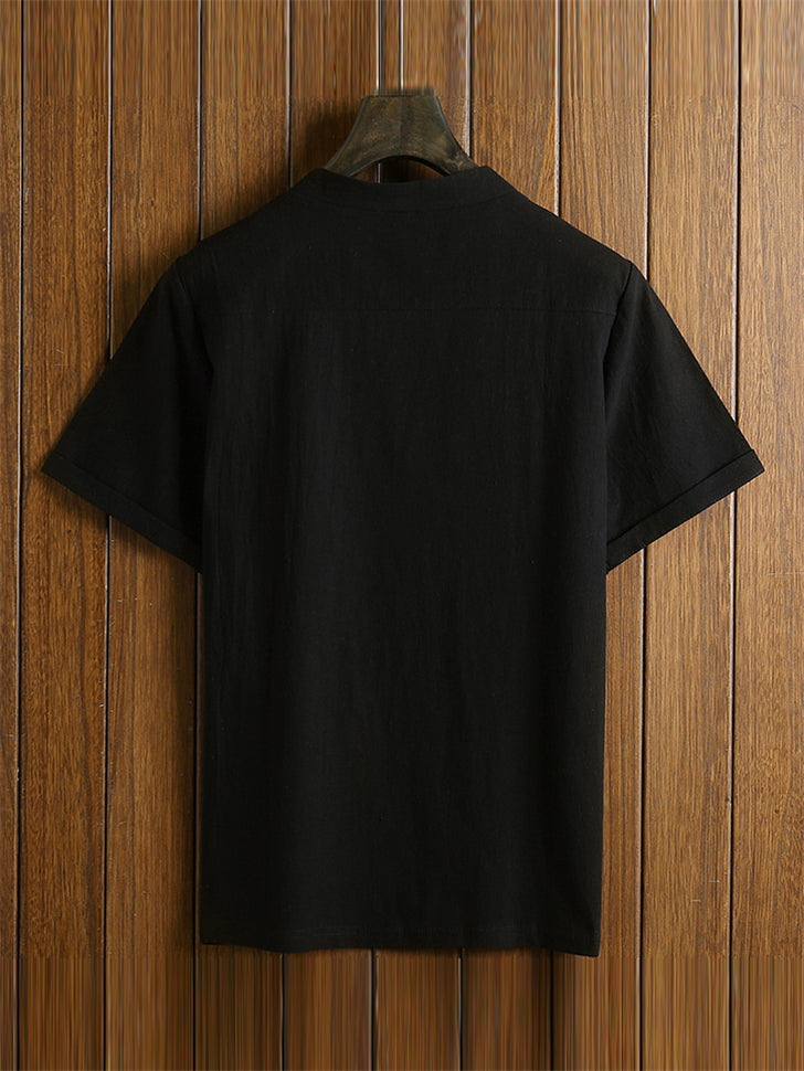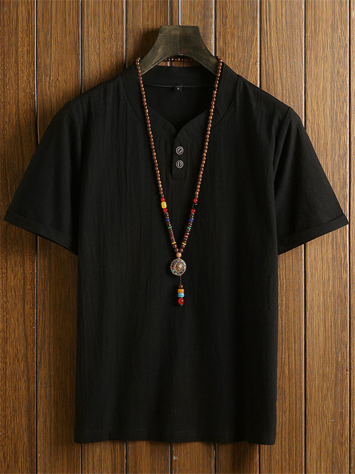 Men's 2Pcs Cool Zen Style Stand Collar Half Sleeve Solid Color Outfits