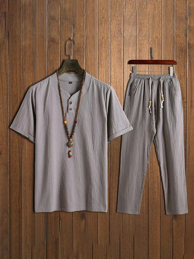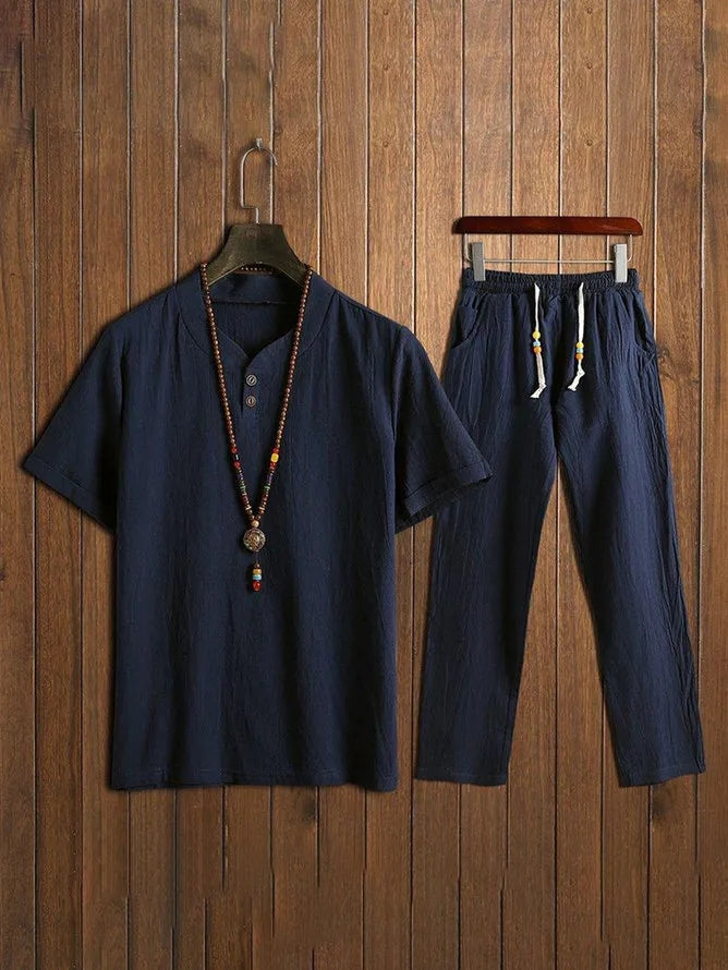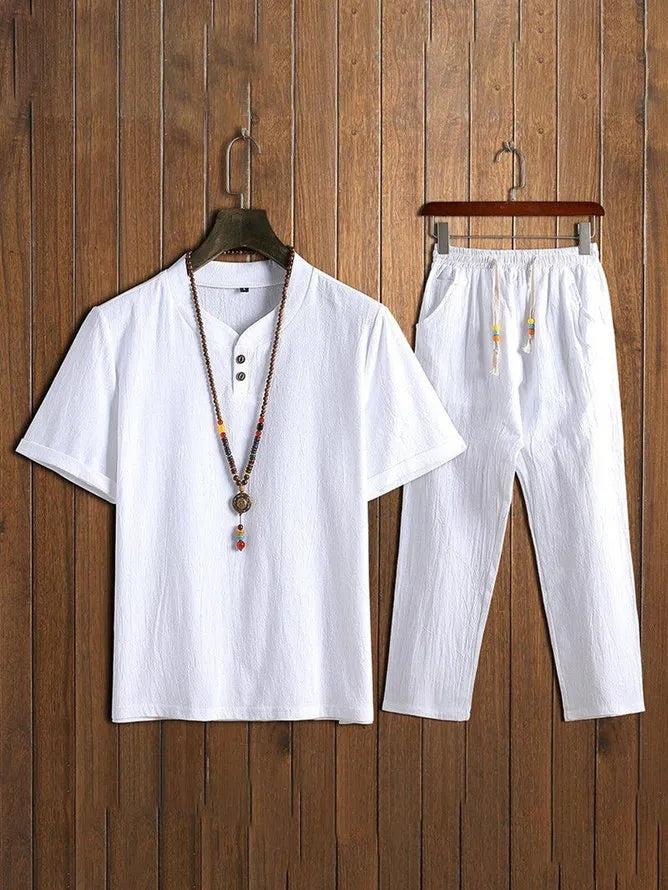 Men's 2 Piece Cotton Linen Short Sets for Summer