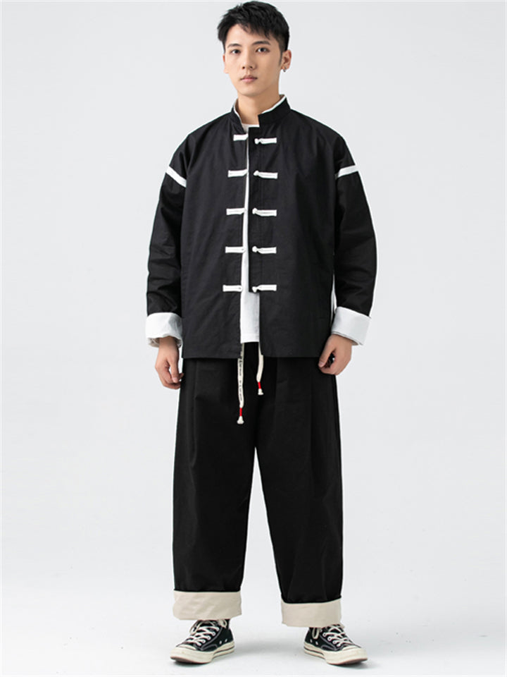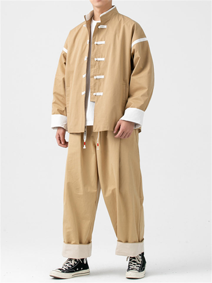 Men's 2Pcs Autumn Cotton Blend Corduroy Frog Button TangSuit Outfit