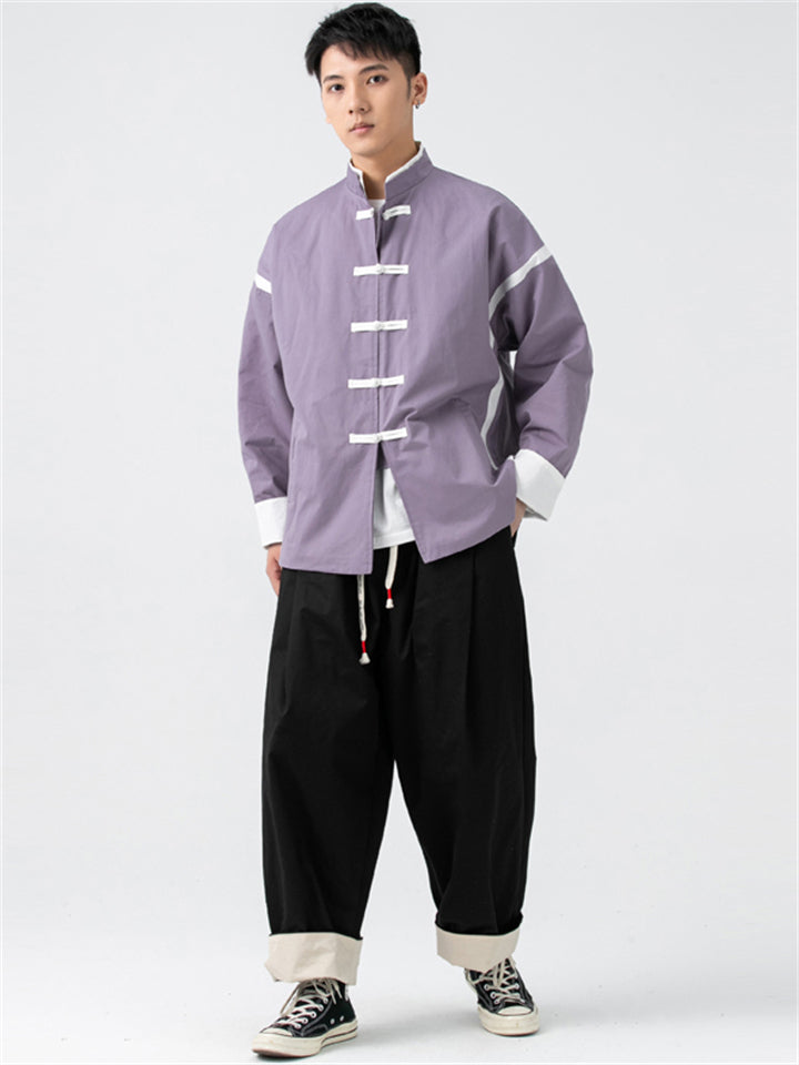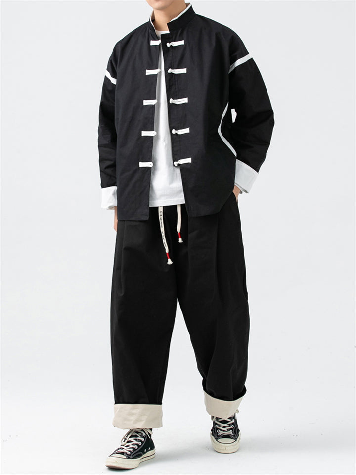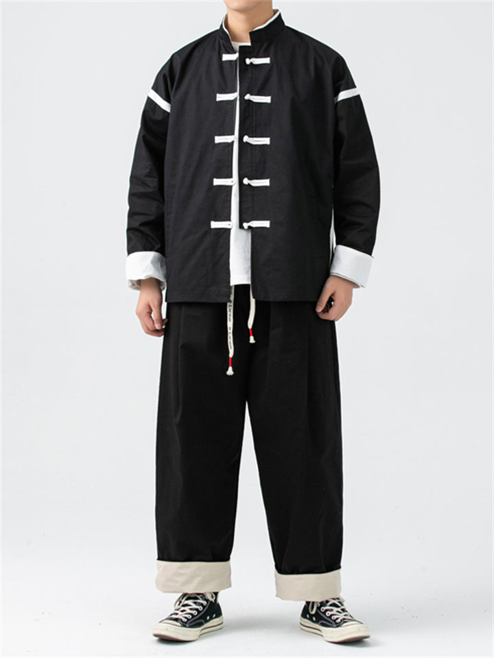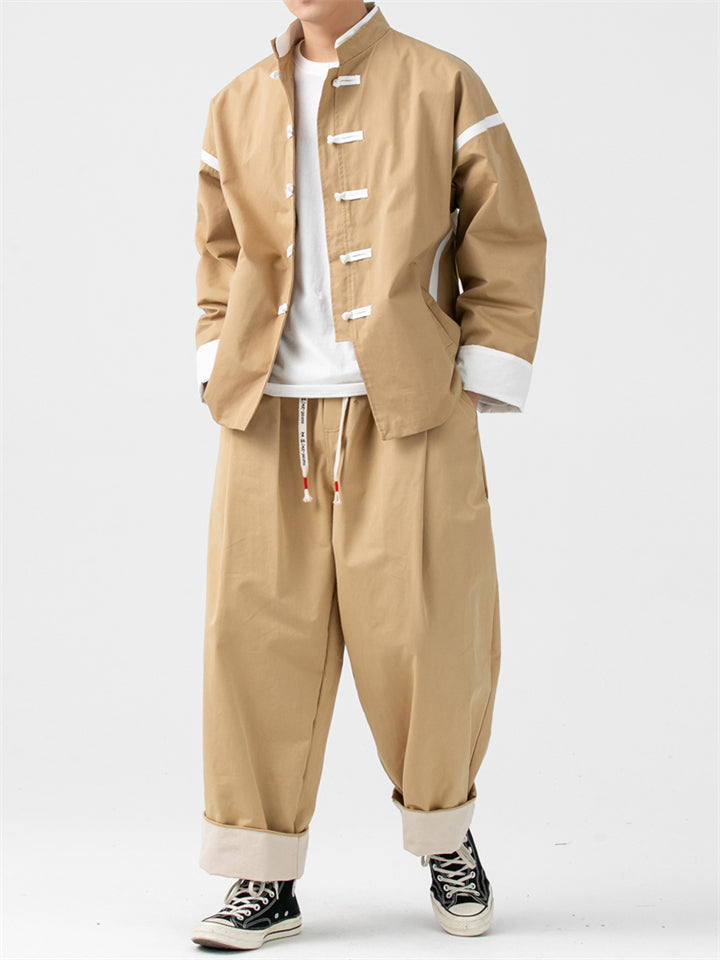 Men's 2Pcs Comfy Autumn Cotton Linen Solid Color TangSuit Outfit
