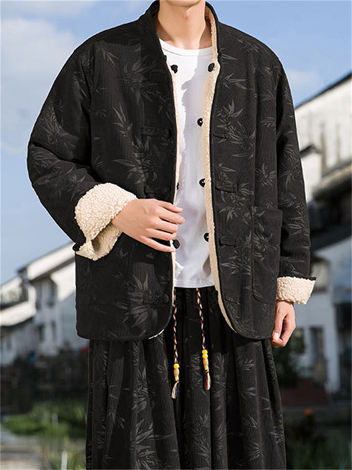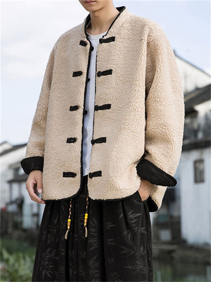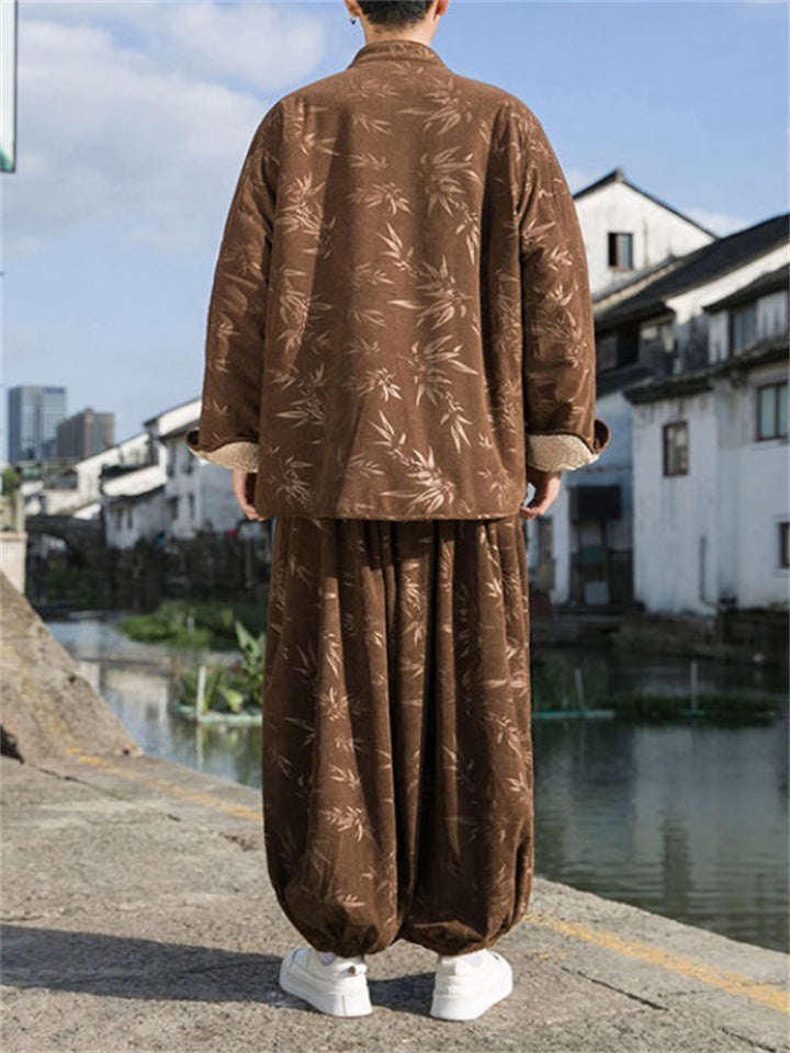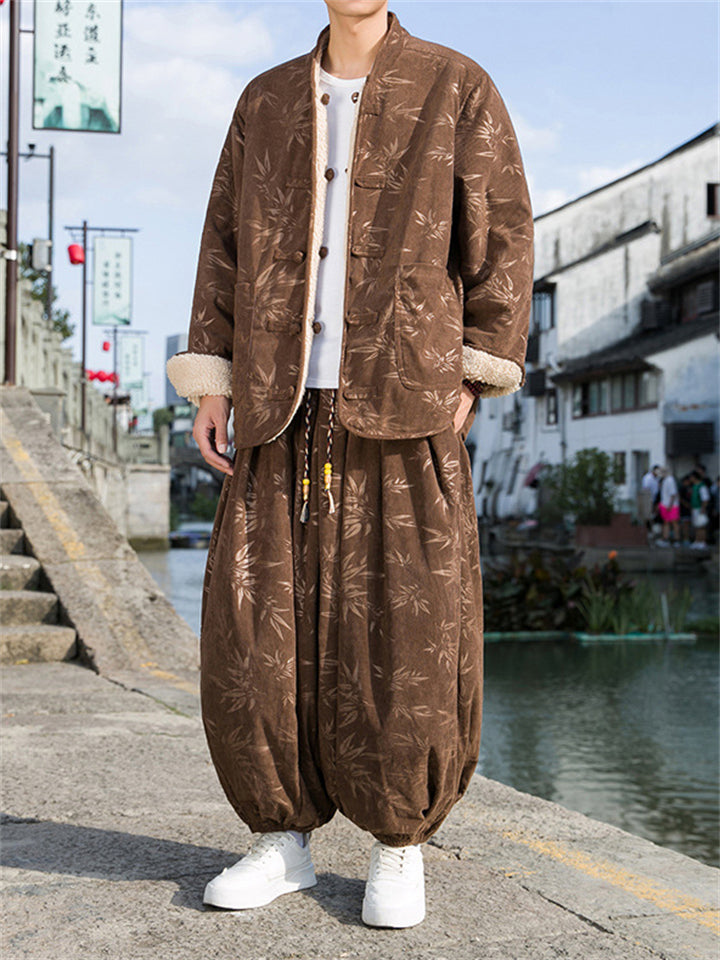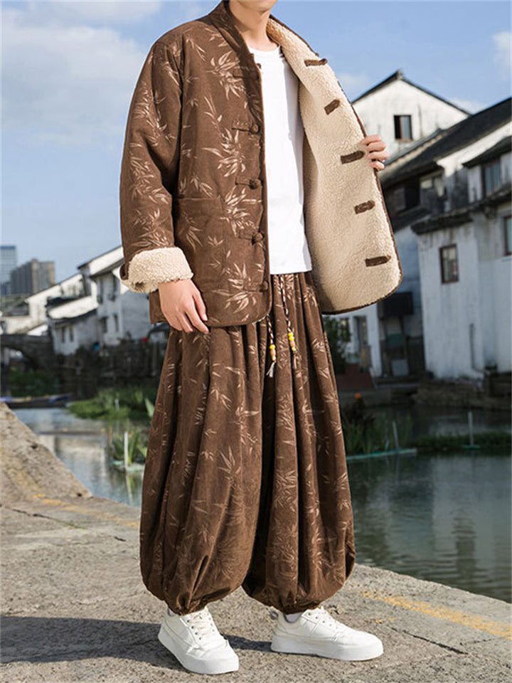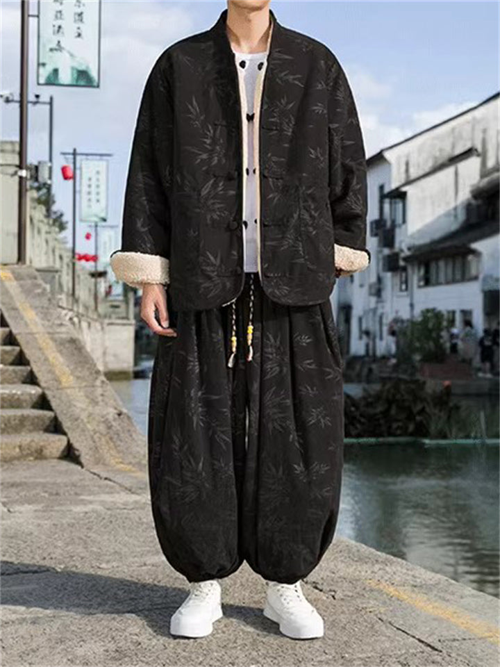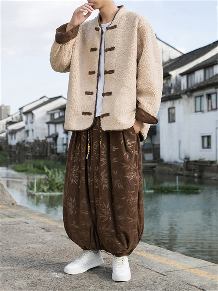 Men's Lamb Wool Reversible Jacket Ankle-tied Pants Chinese Style Thick Outfits