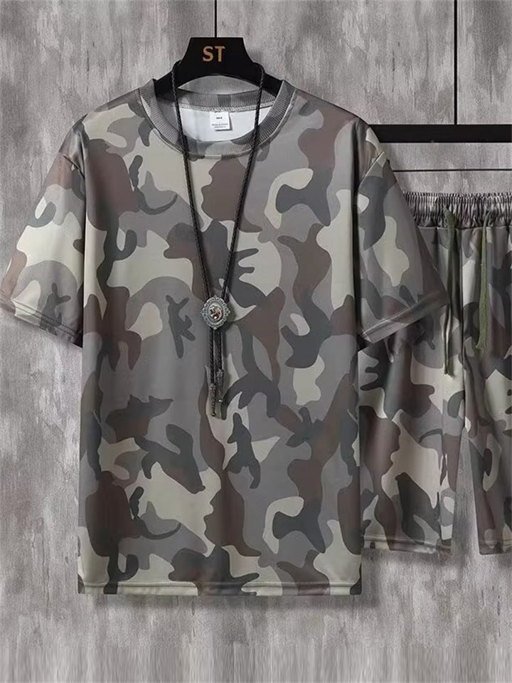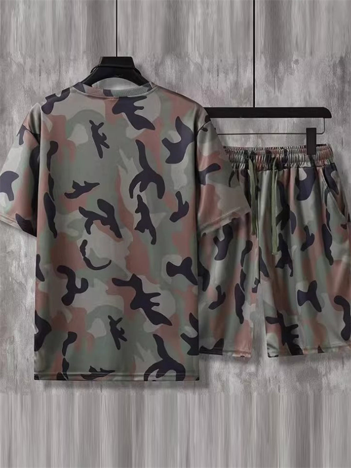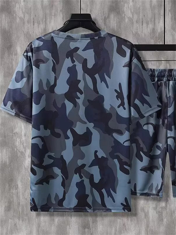 Plus Size Men's 2Pcs Summer Retro Camouflage Print Short Sleeve Outfits