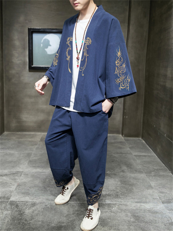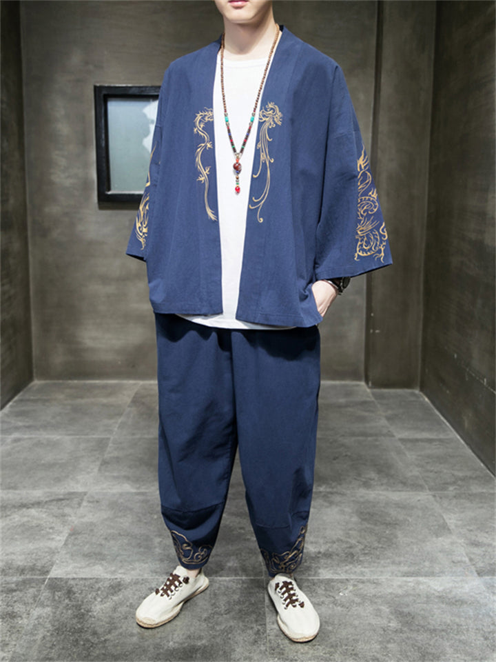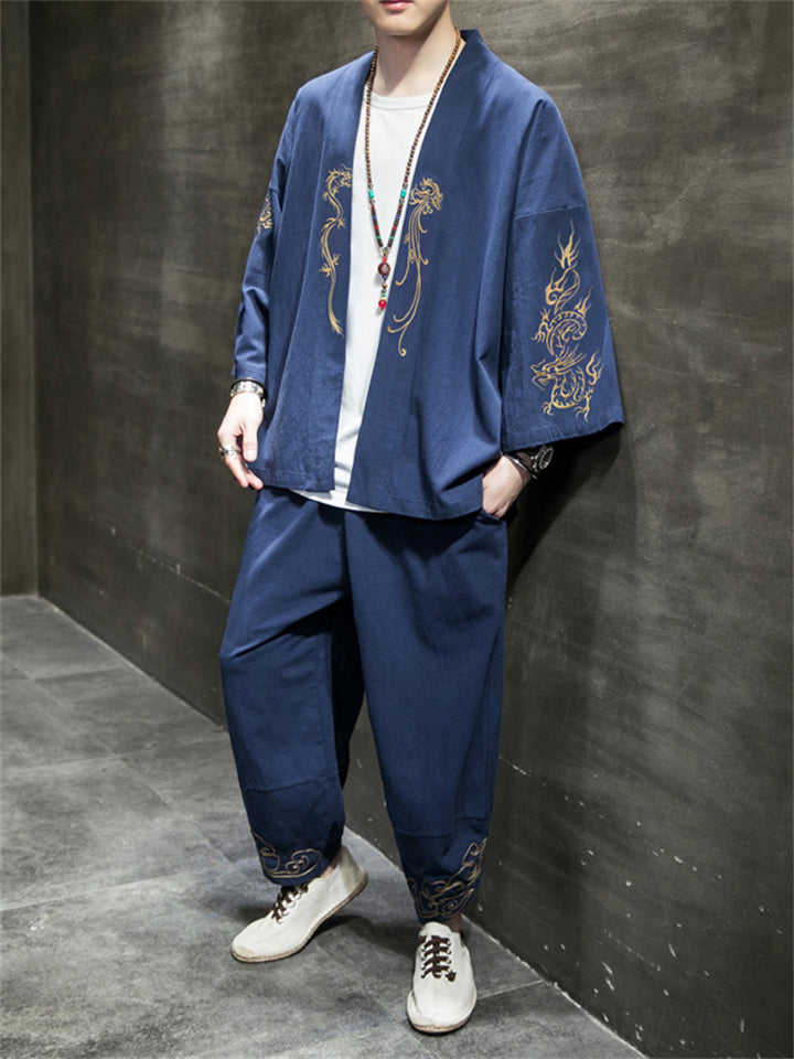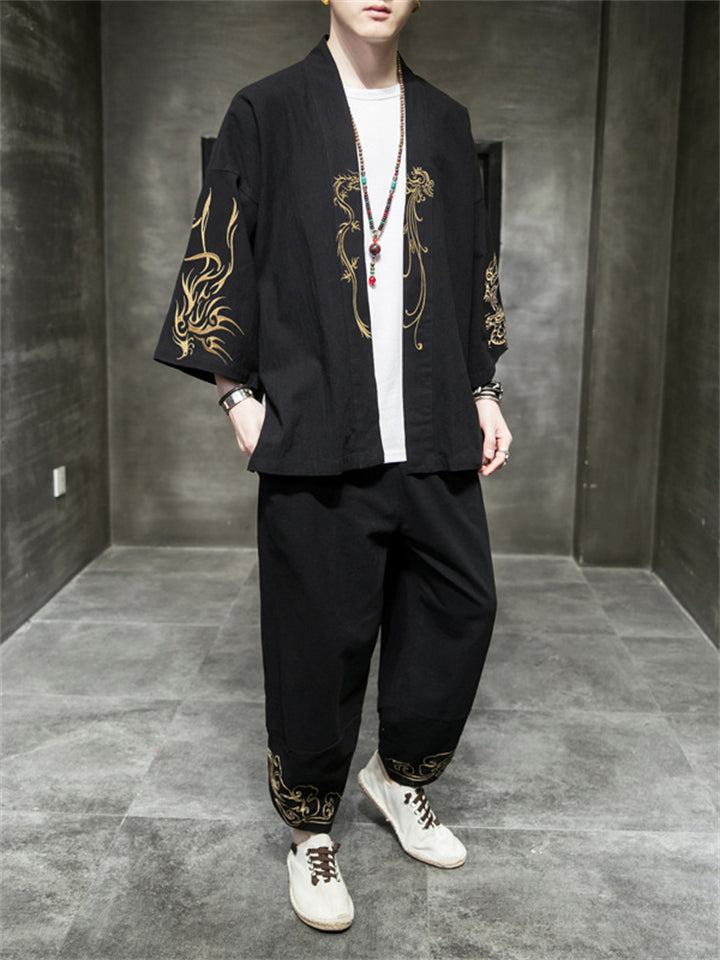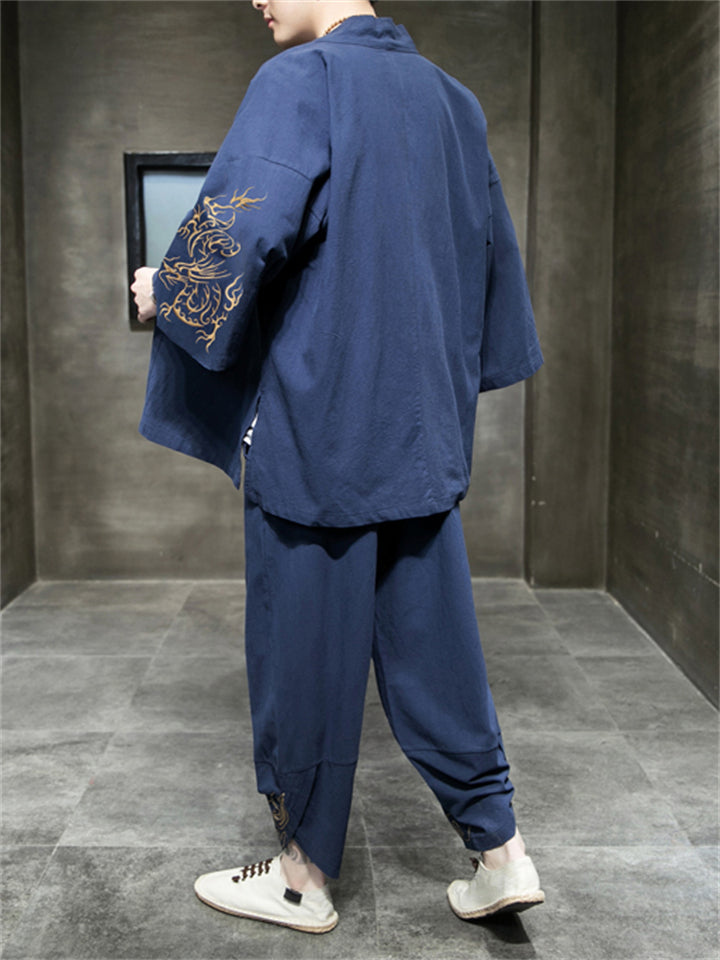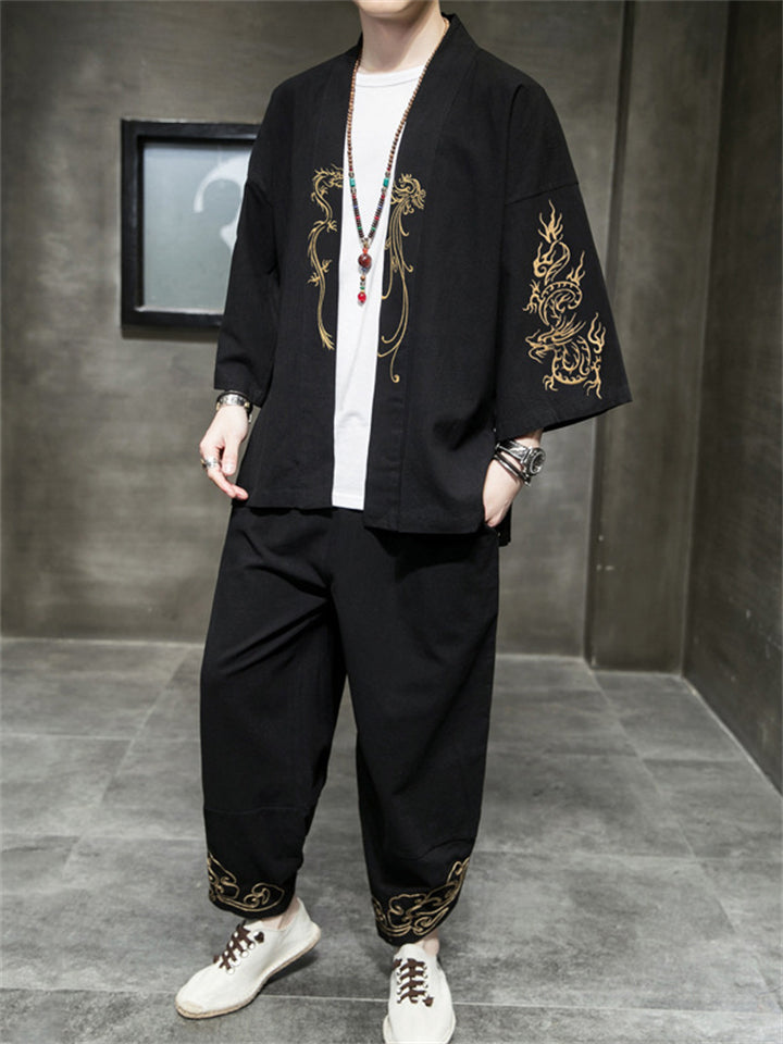 Retro Dragons Embroidered 2-Pieces Outfits