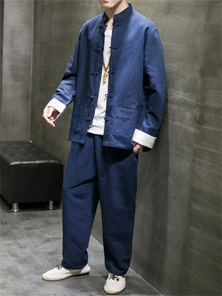 Special Button Cotton Linen Stand Collar Loose Male Outfits
