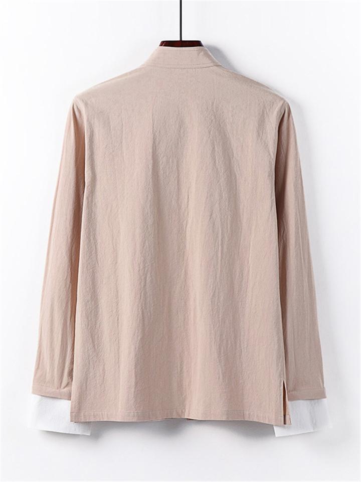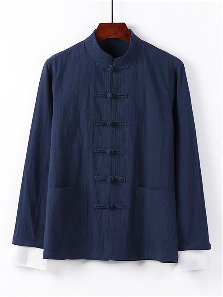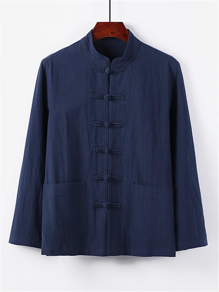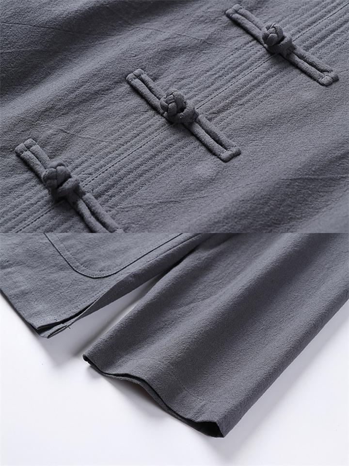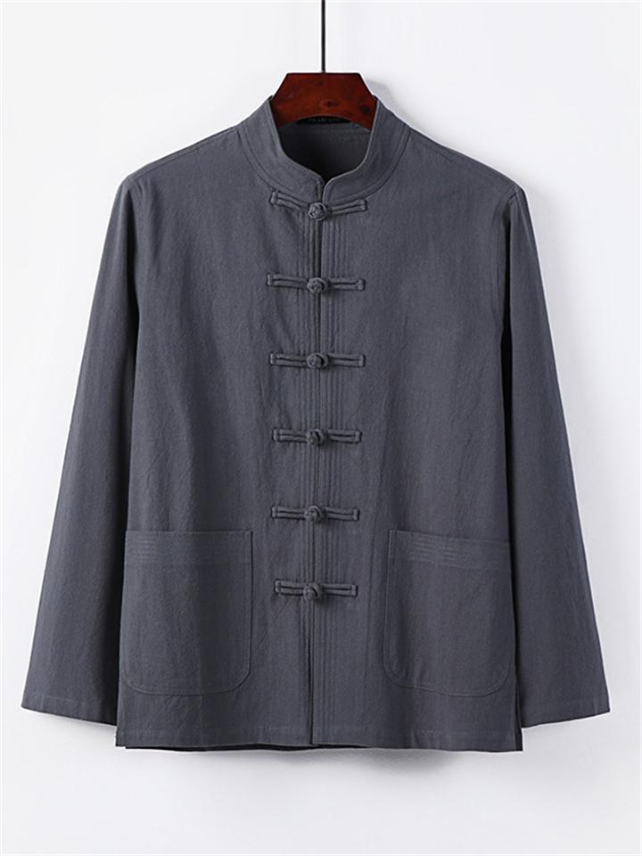 Men's 2Pcs Comfy Autumn Cotton Linen Solid Color TangSuit Outfit