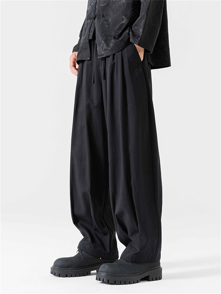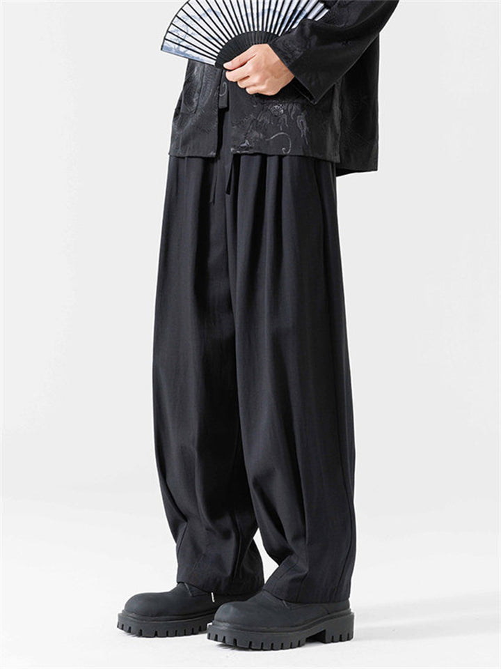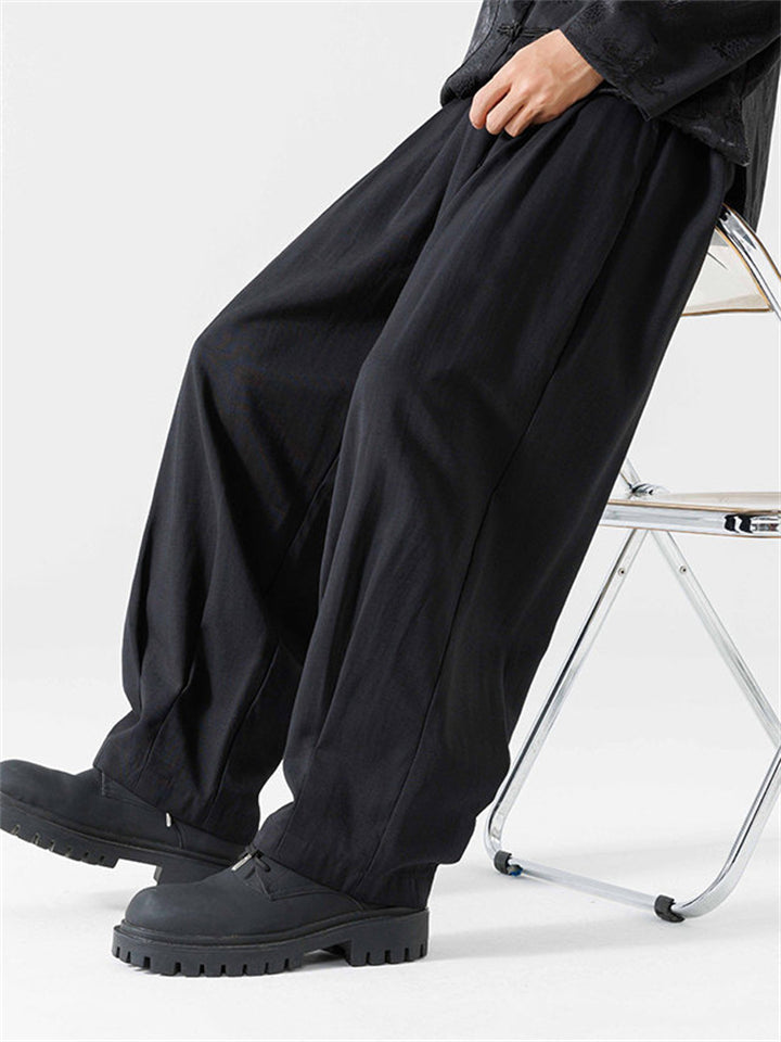 Men's Japanese Style Vintage Solid Color Texture Scimitar Pants