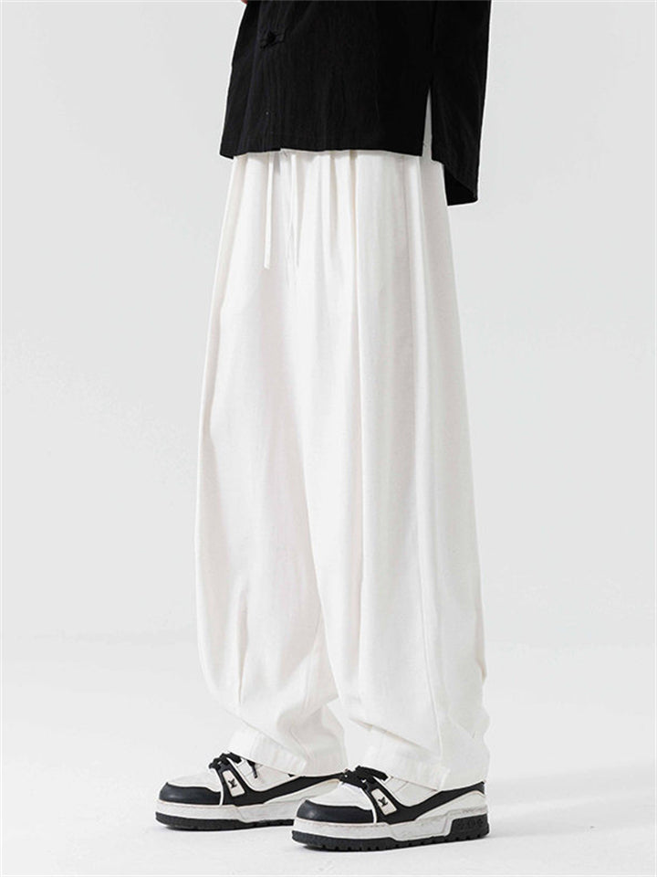 Vintage Japanese Street Style Drawstring Linen Pants for Men