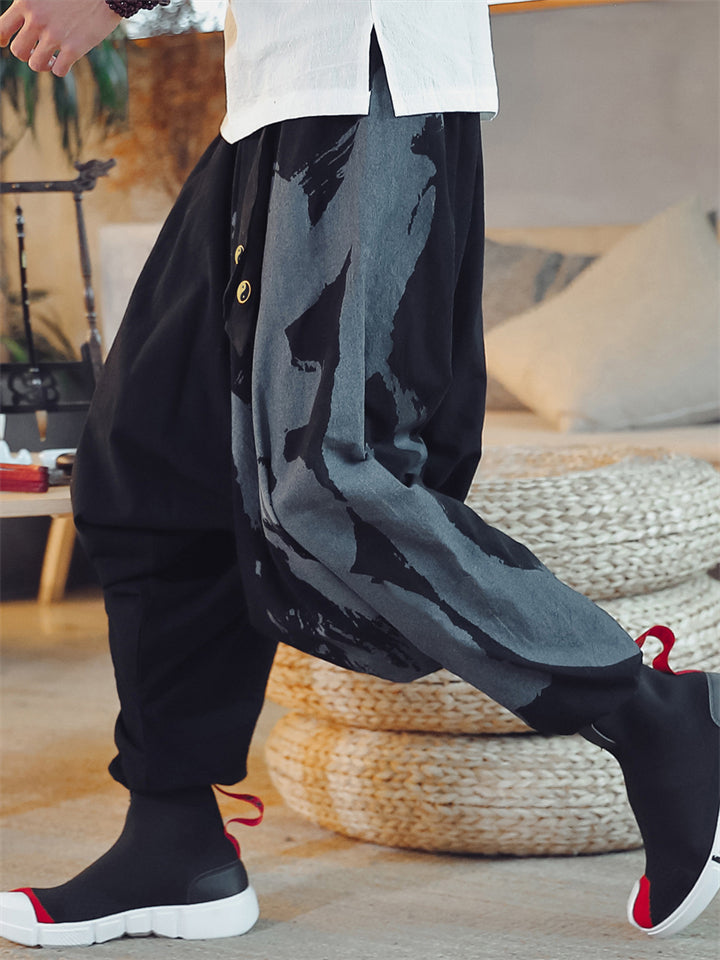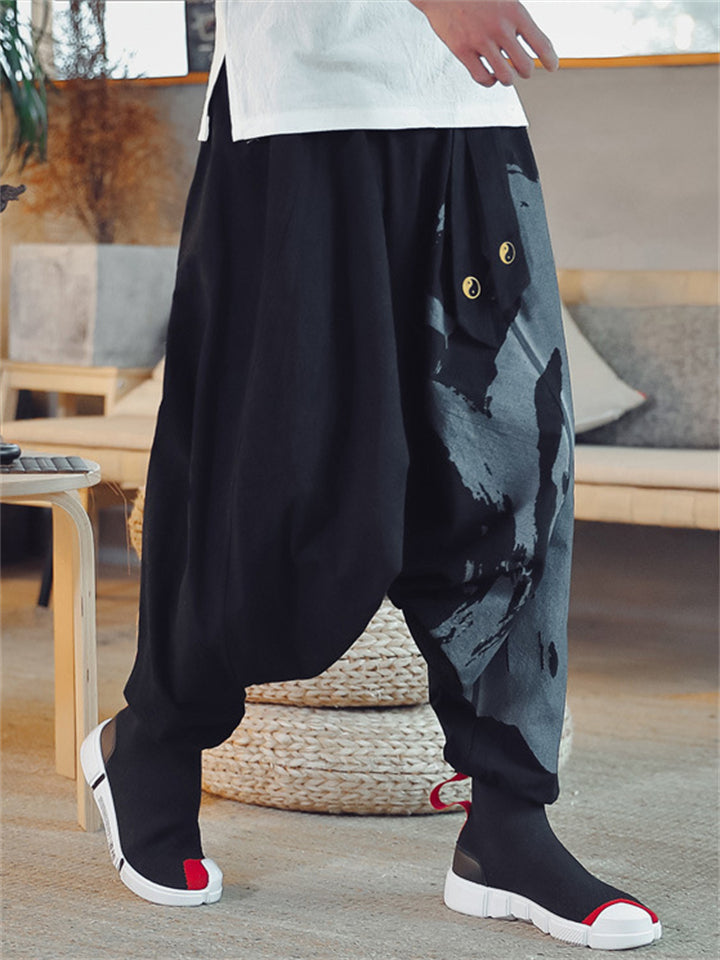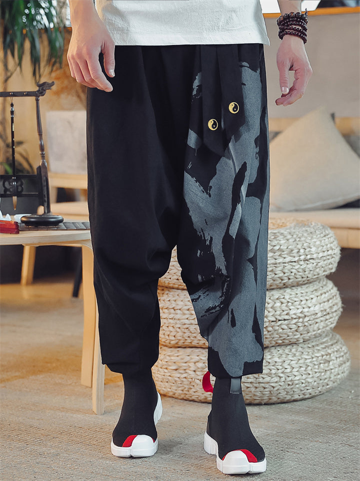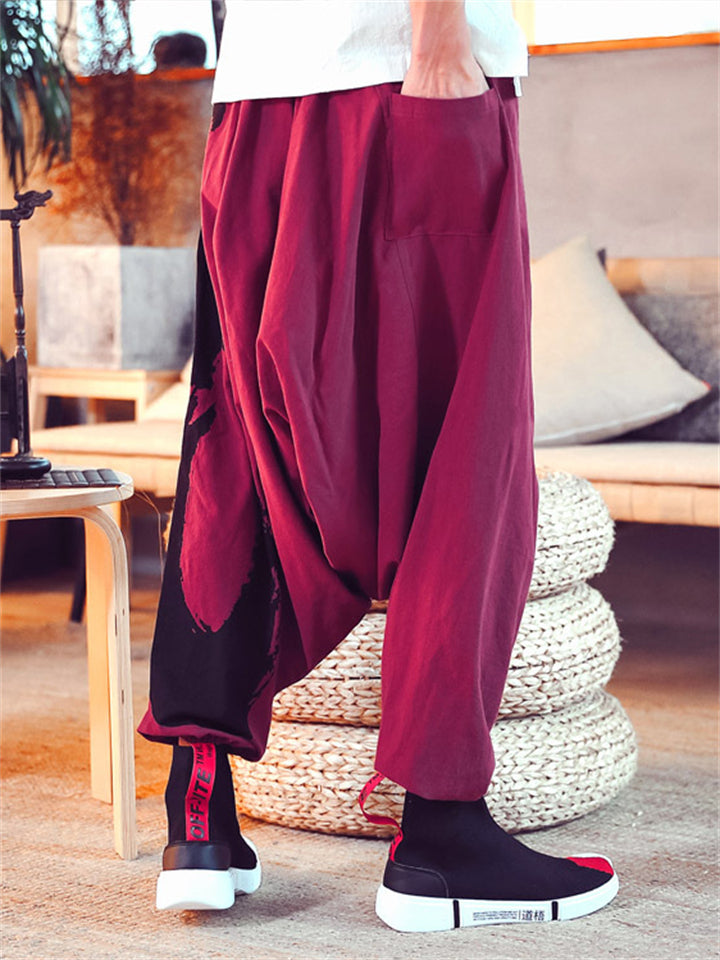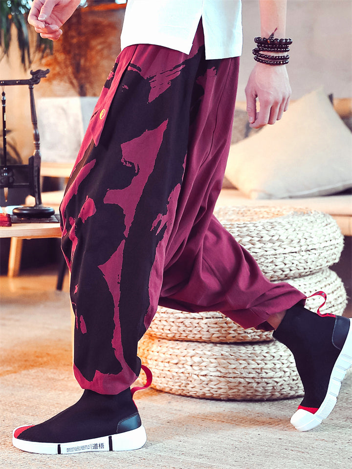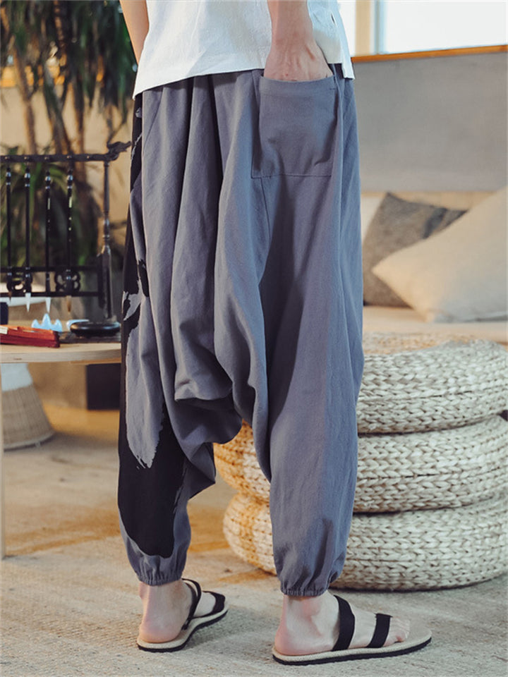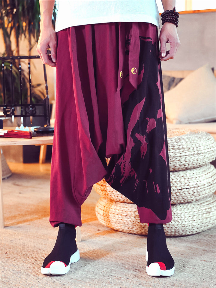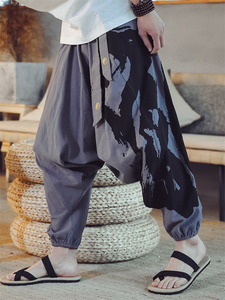 Men's Summer Ethnic Style Beach Bloomers Drop Crotch Capri Pants