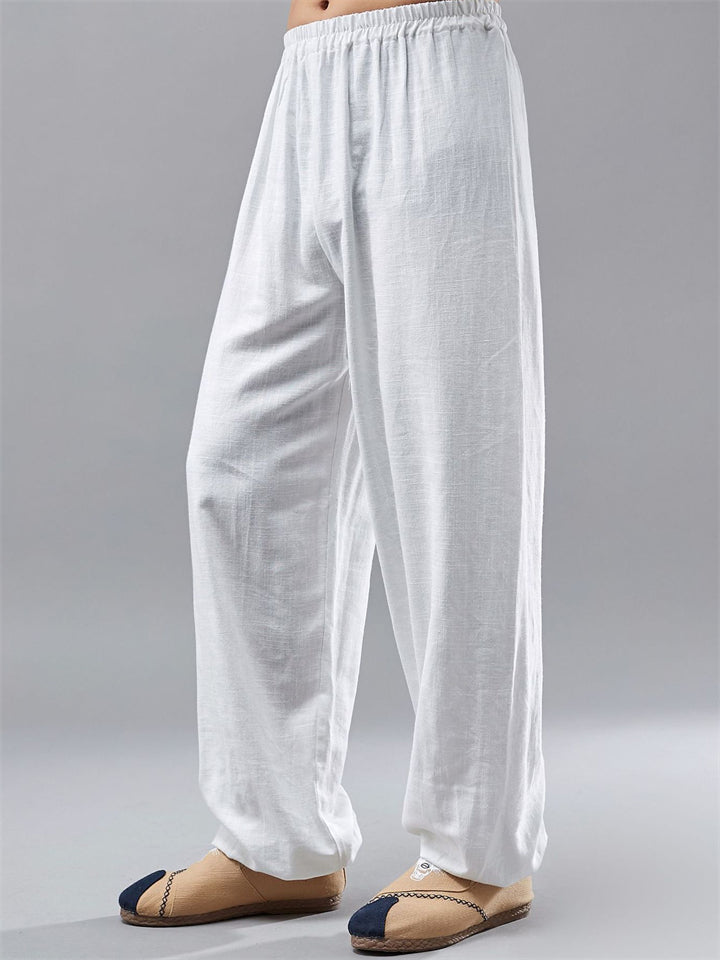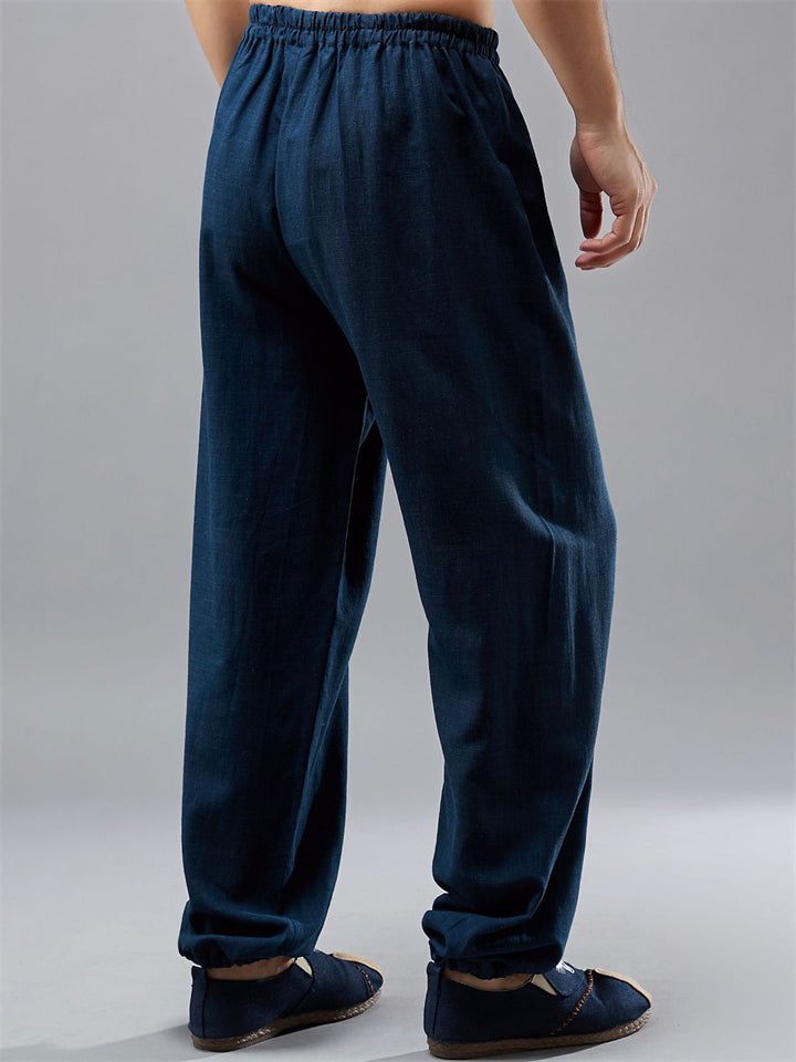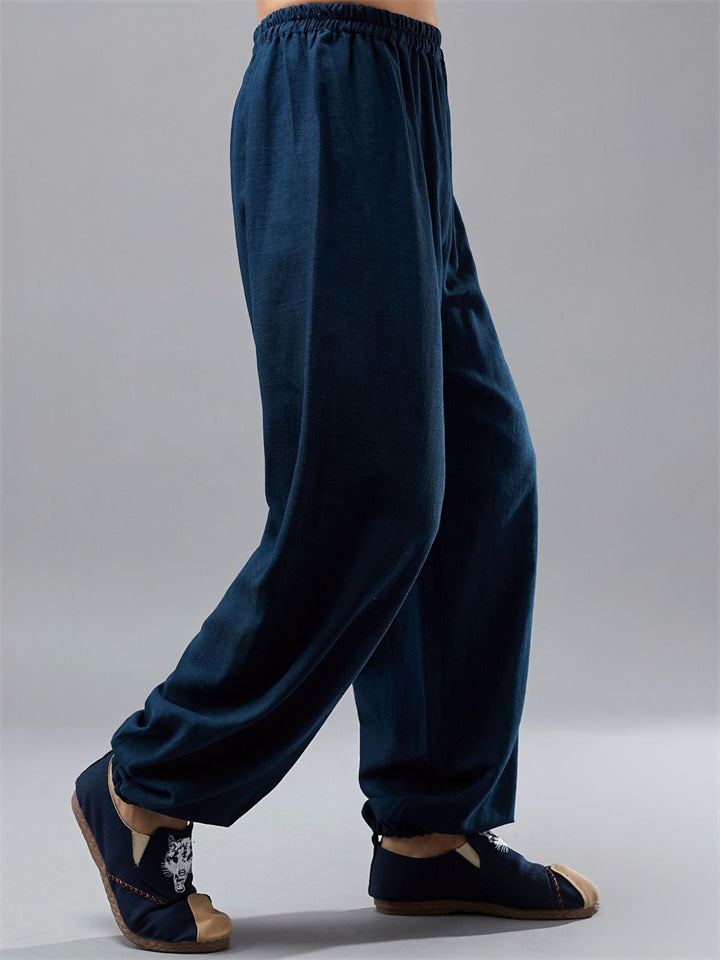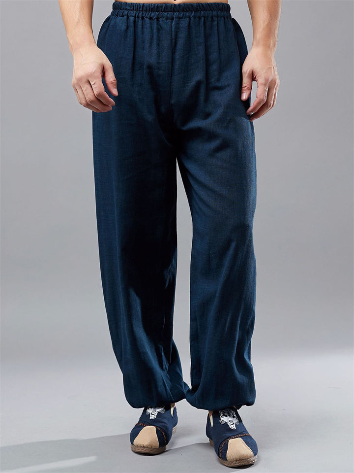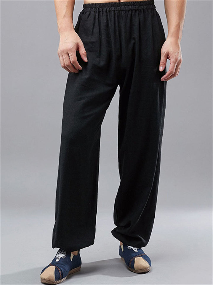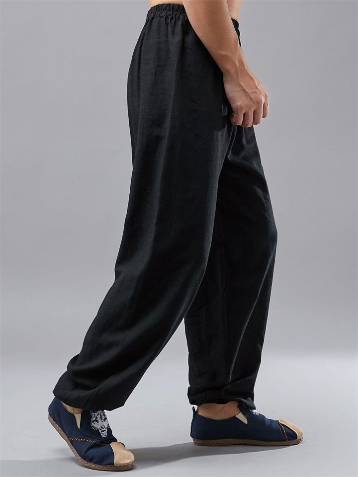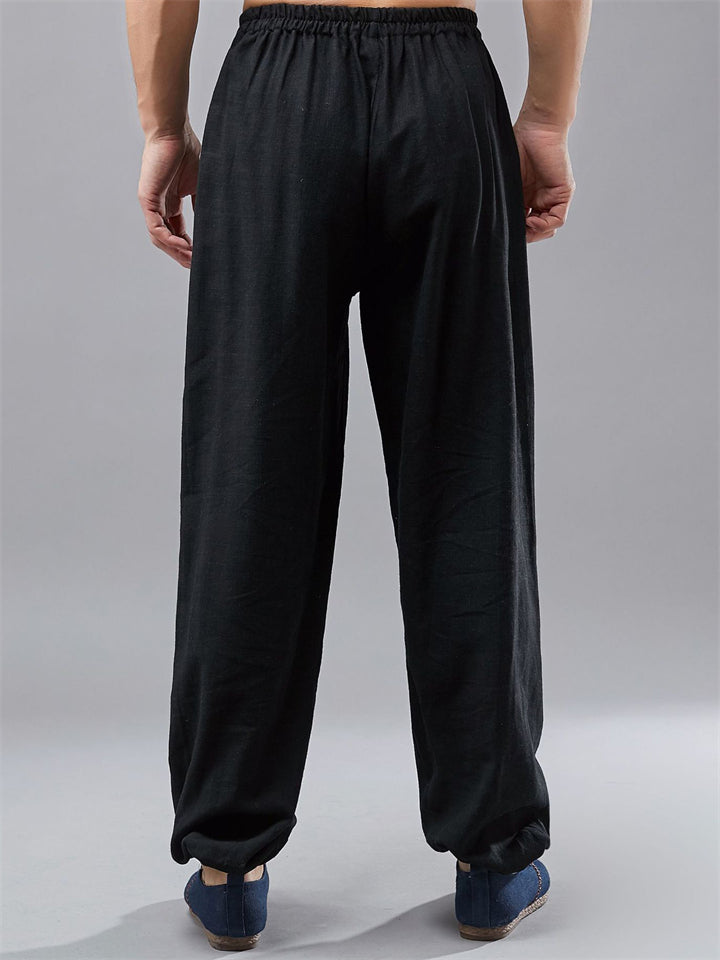 Chinese Style Ramie Loose Elastic Waist Kung Fu Pant for Men