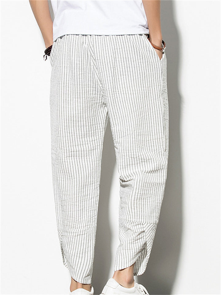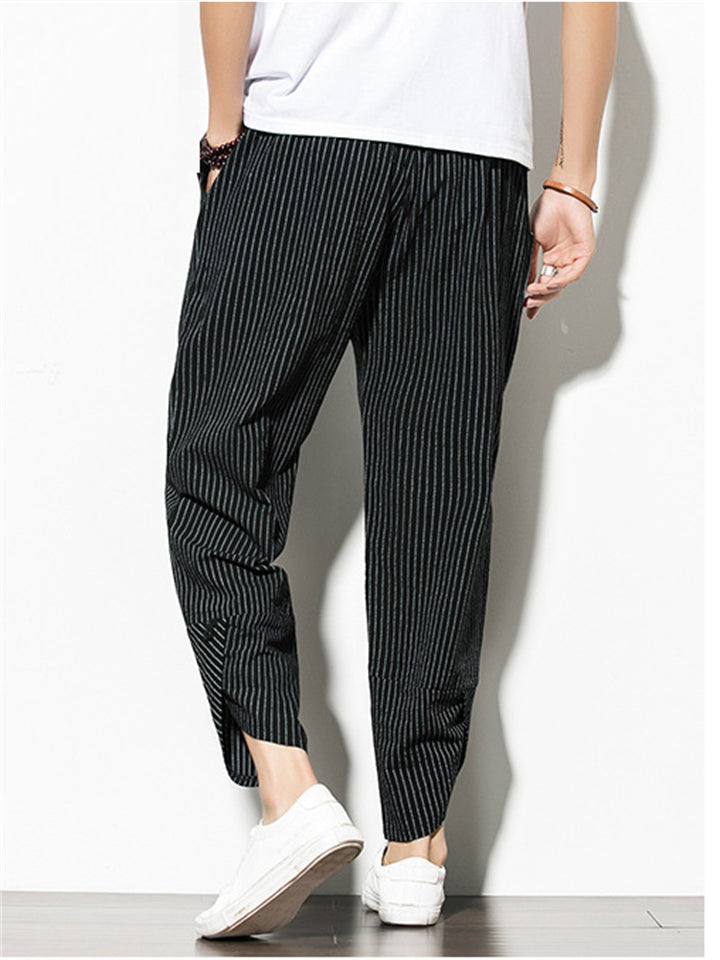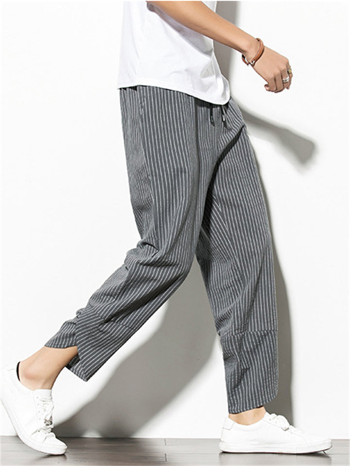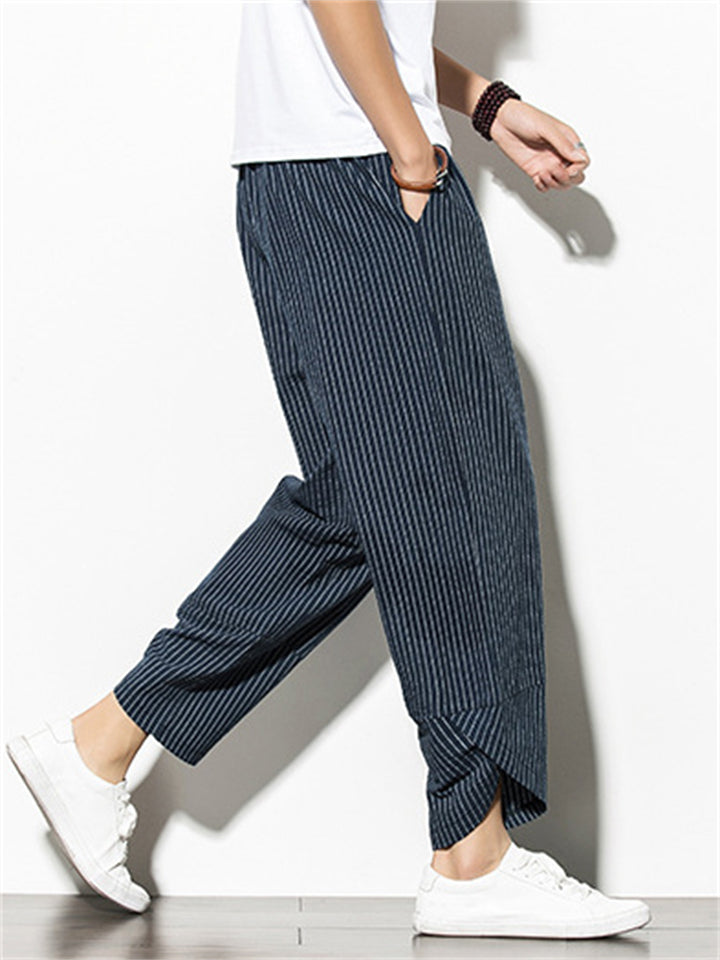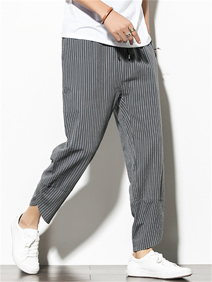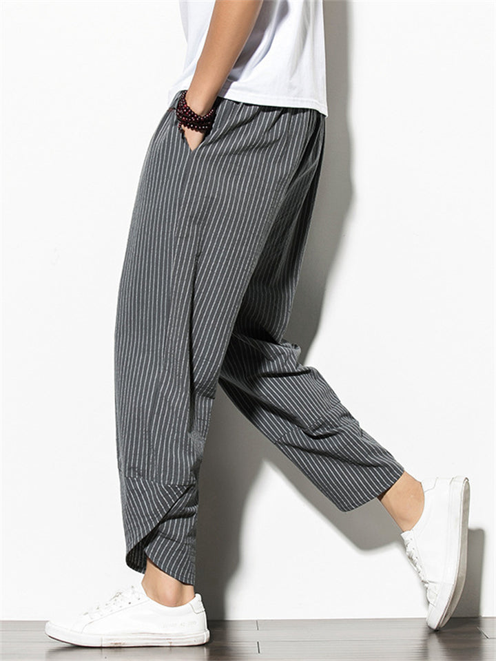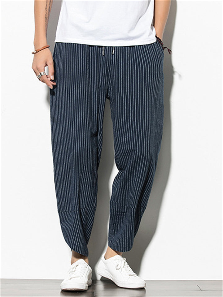 Men's Retro Summer Striped Drawstring Bloomers Jogger Pants