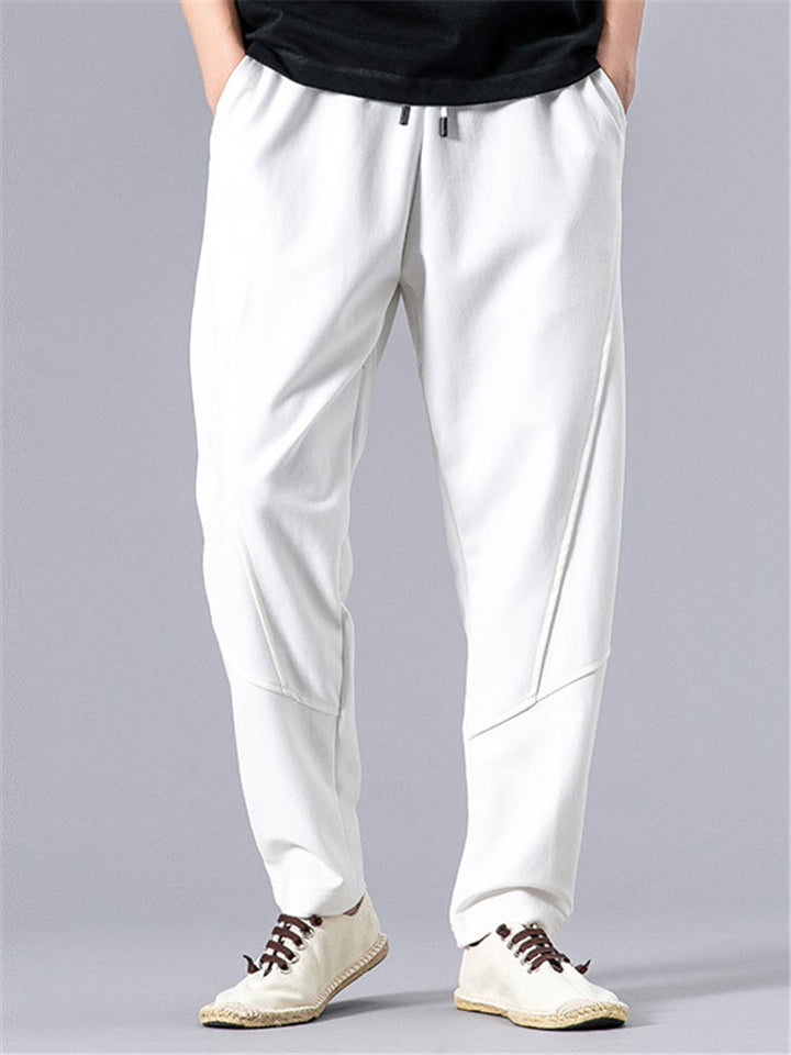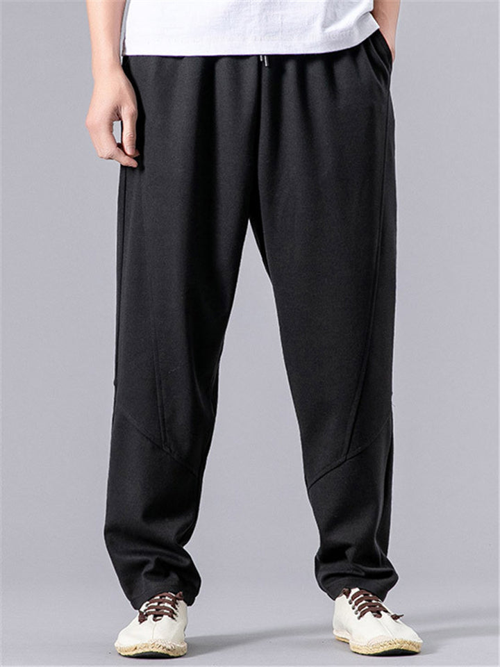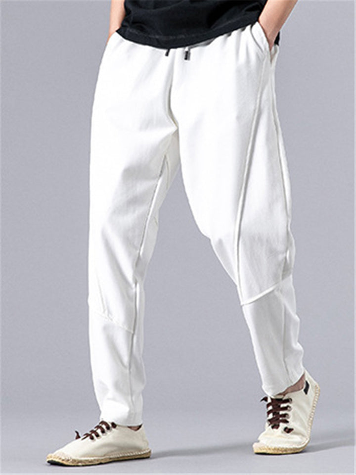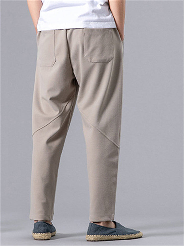 Vintage Japanese Street Style Drawstring Linen Pants for Men