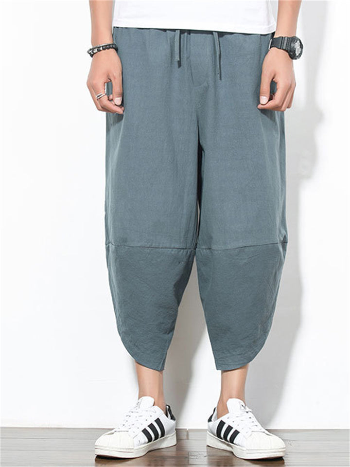 Vintage Japanese Street Style Drawstring Linen Pants for Men