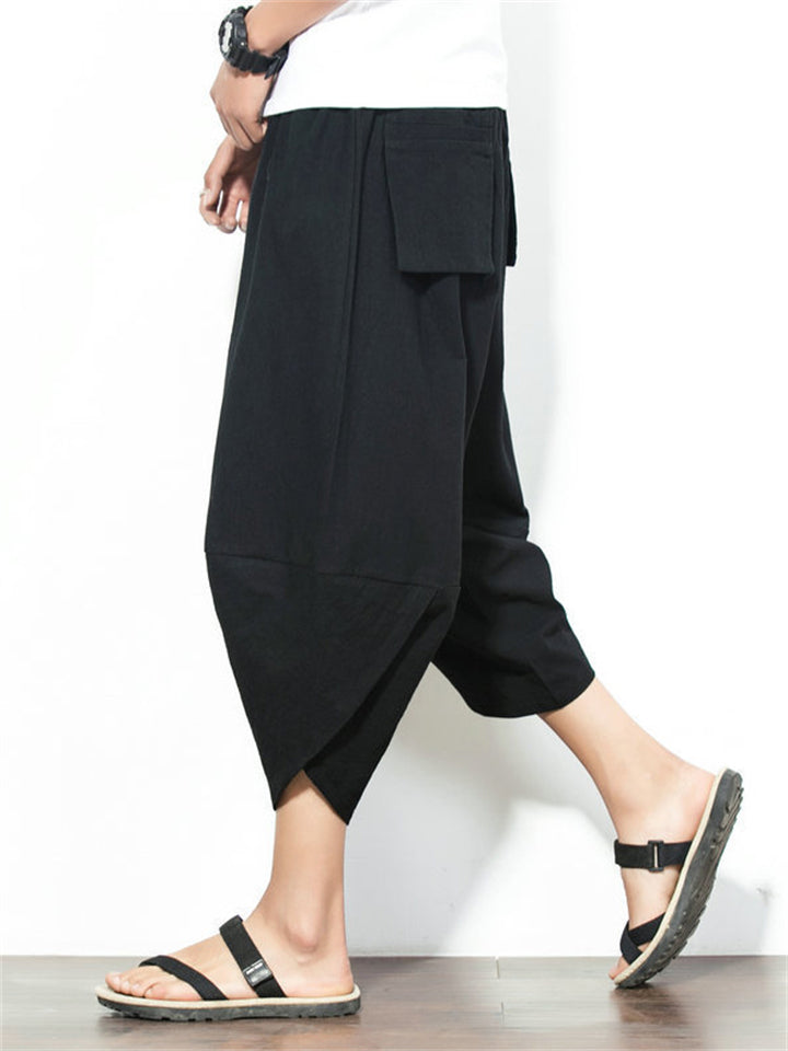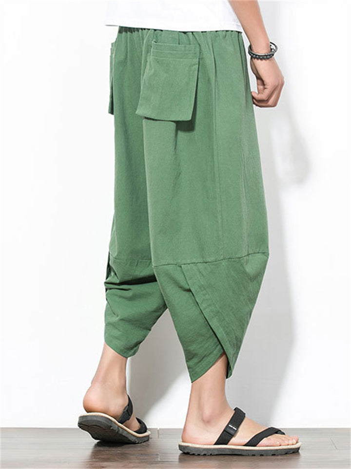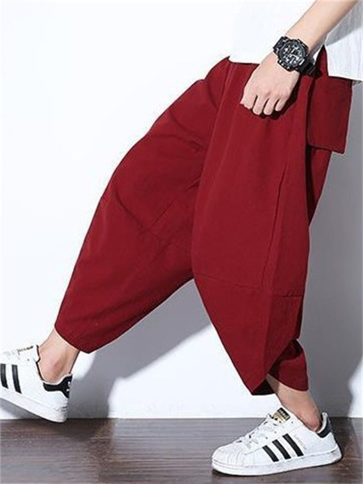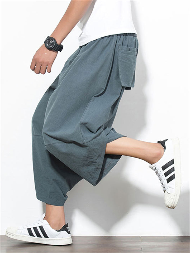 Men's Summer Ethnic Style Beach Bloomers Drop Crotch Capri Pants