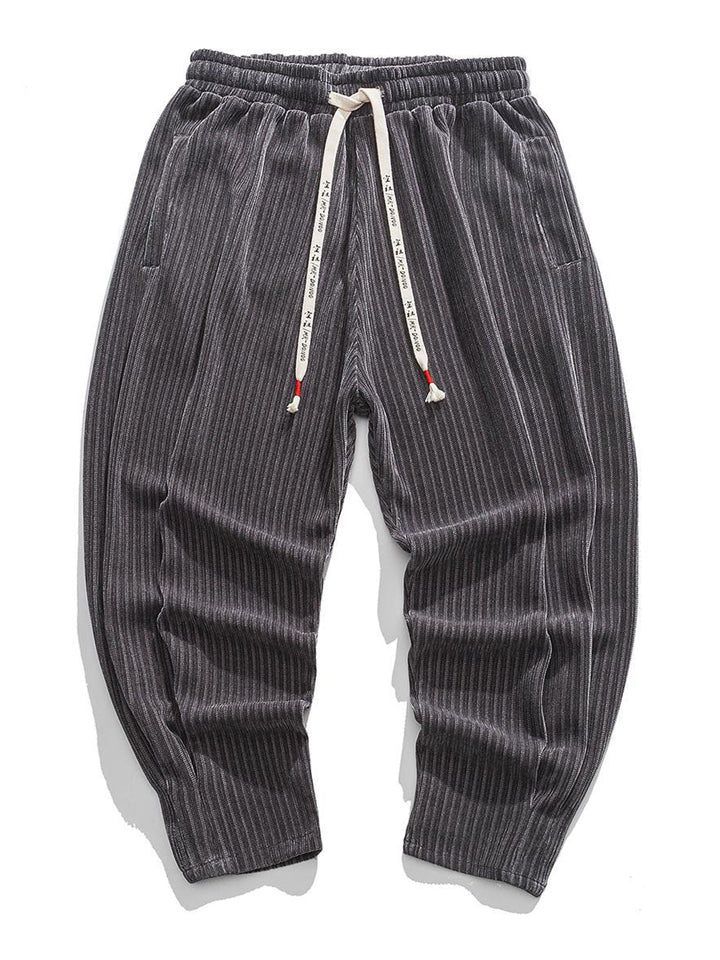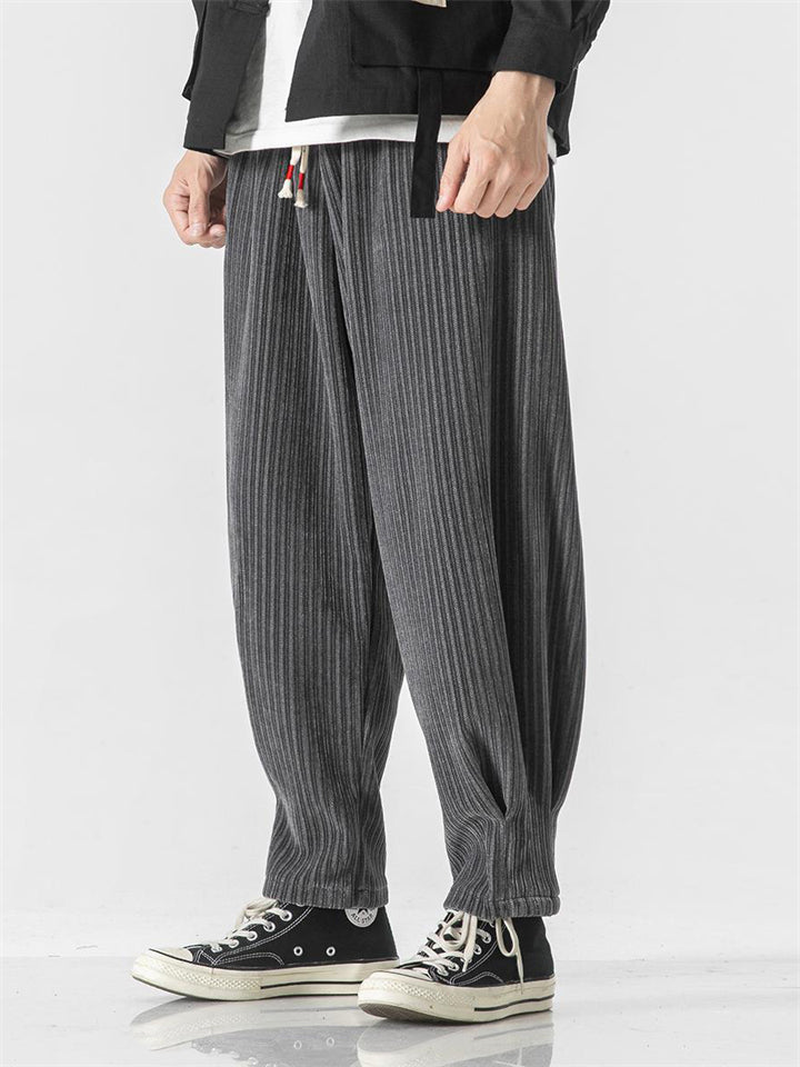 Men's Autumn Vintage Striped Drawstring Wide Leg Pants