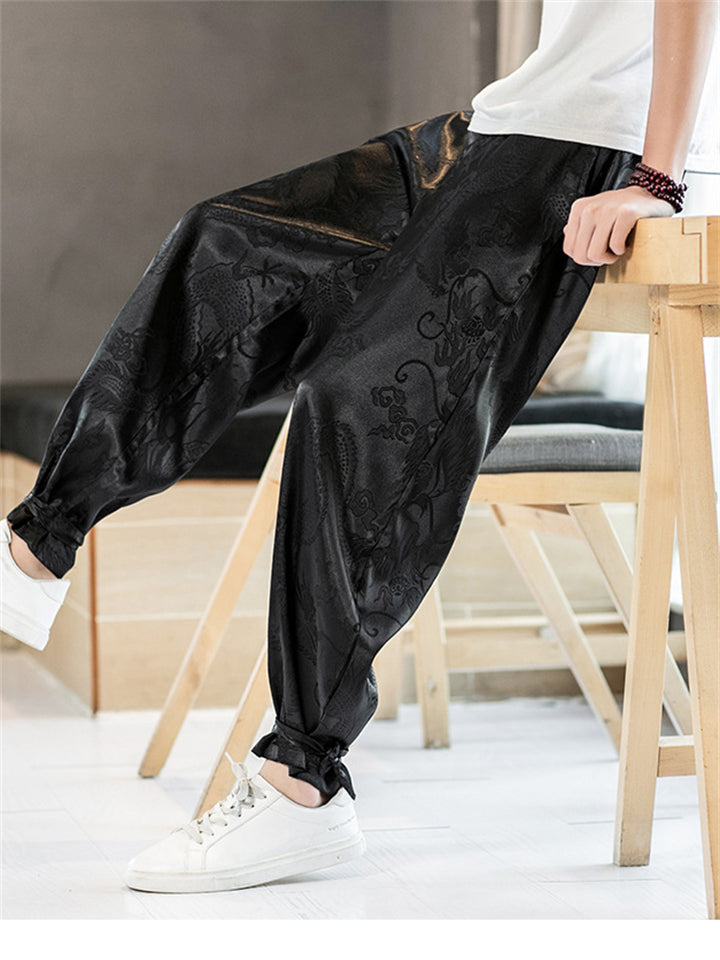 Men's Japanese Style Vintage Solid Color Texture Scimitar Pants