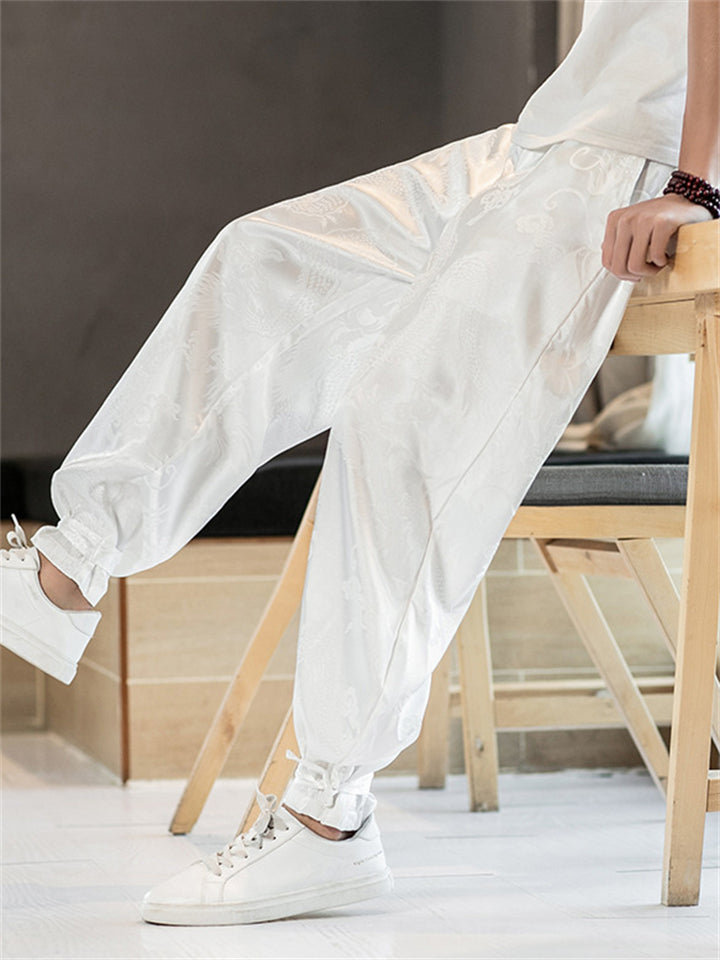 Men's Summer Ethnic Style Beach Bloomers Drop Crotch Capri Pants
