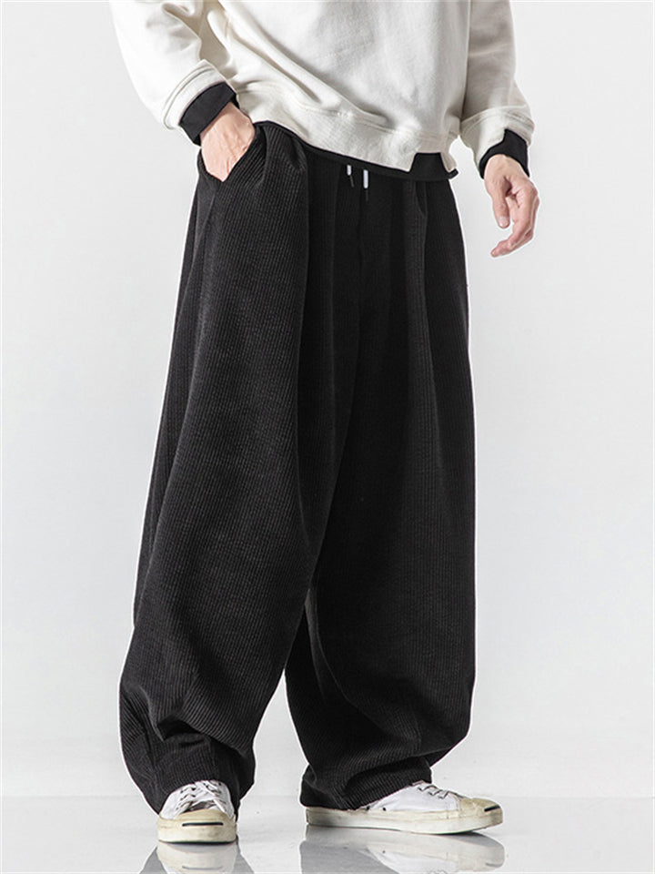 Men's Japanese Style Vintage Solid Color Texture Scimitar Pants