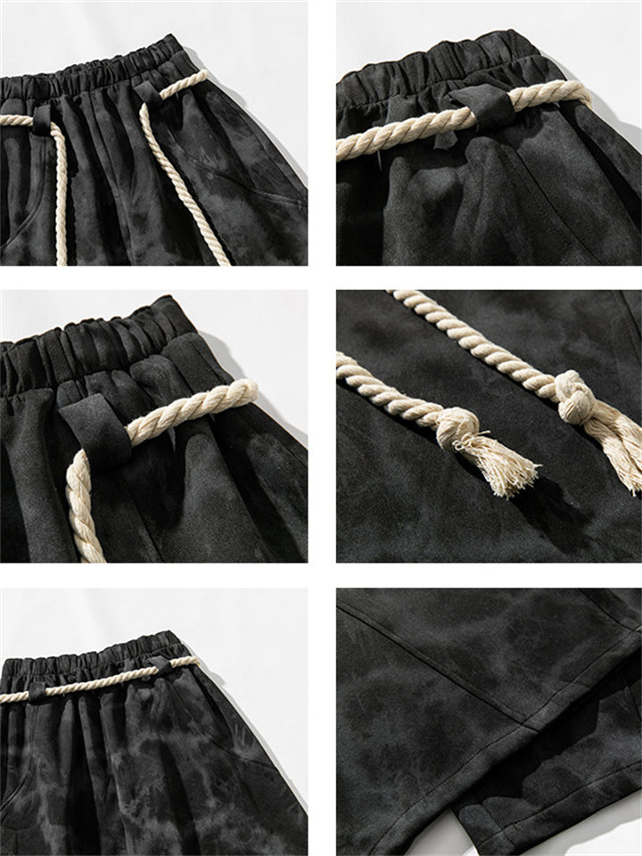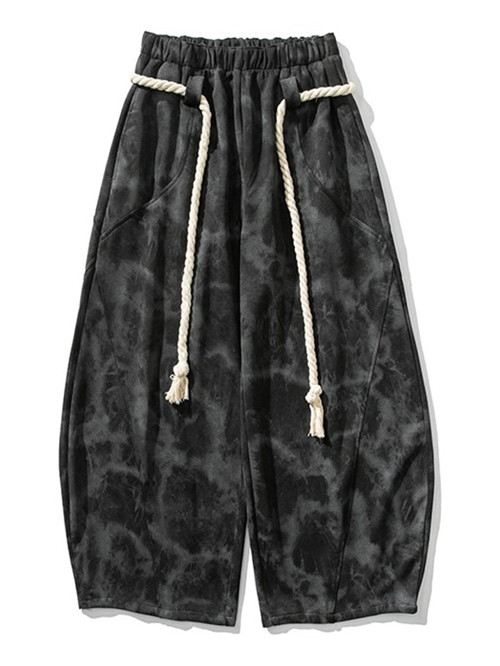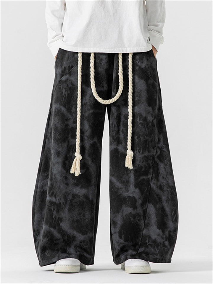 Japanese Style Braided Rope Tie-Dye Oversized Pants for Men