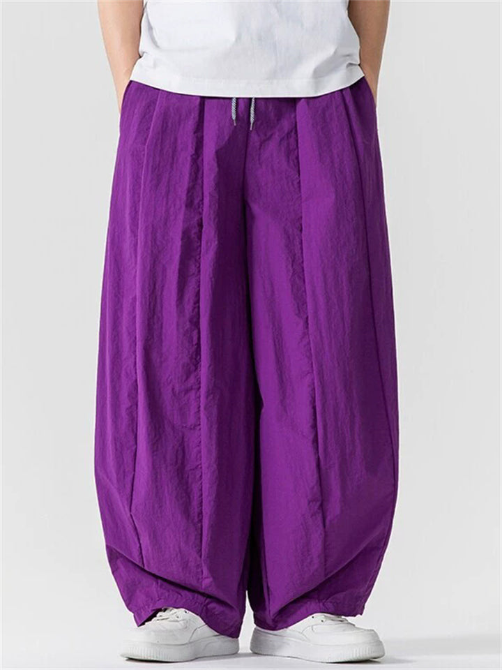 Men's Japanese Style Vintage Solid Color Texture Scimitar Pants